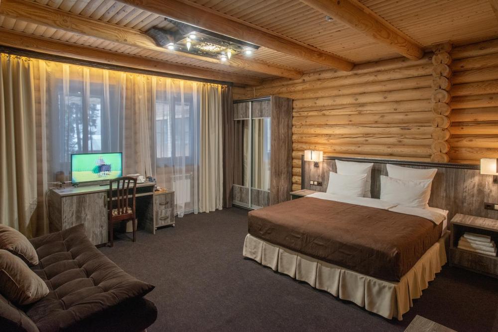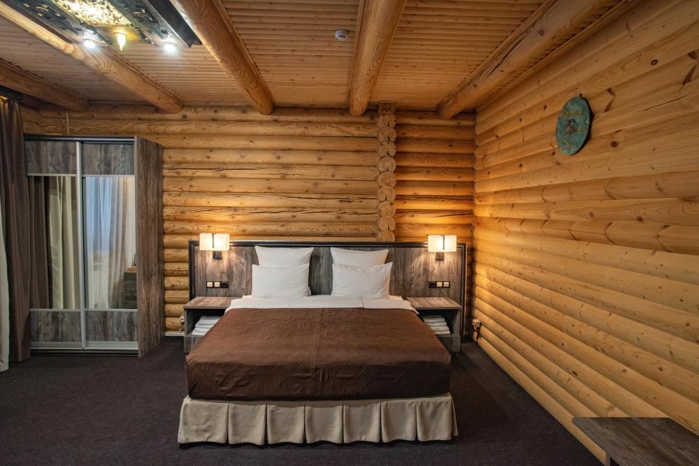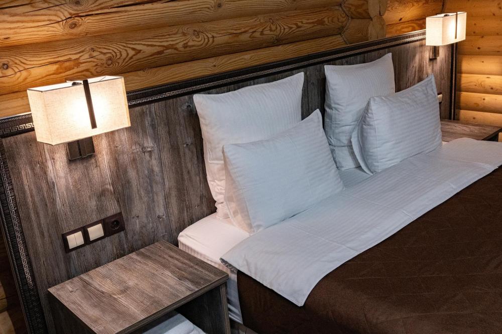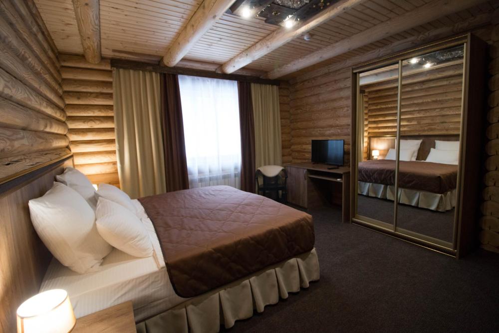 Отель предлагает 6 просторных и элегантных однокомнатных номеров, выполненных в особом интерьере для комфортного размещения 1-го, 2-х, 3-х человек и расположенных на первом и втором этажах корпуса "Сруб". В номере имеется спальная зона с двумя раздельными односпальными кроватями, гостиная зона с диваном и журнальным столиком, рабочая зона с функциональным столом и стулом, ванная комната с бодрящим душем. В стоимость номера входит завтрак, парковка, WiFi.