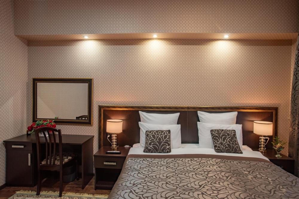 Просторный и элегантный номер, выполненный в особом интерьере для комфортного двухместного размещения. В номере имеется спальная зона с удобной двуспальной кроватью, рабочая зона с функциональным рабочим столом, гостиный уголок с диваном и столиком, и просторная ванная комната с бодрящим душем – все для восстановления сил после насыщенного дня.