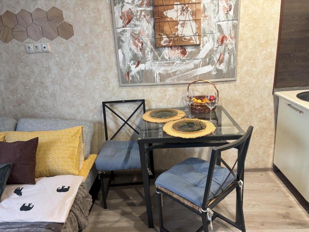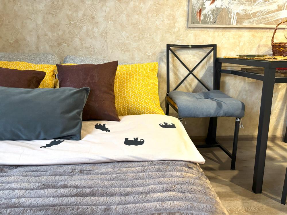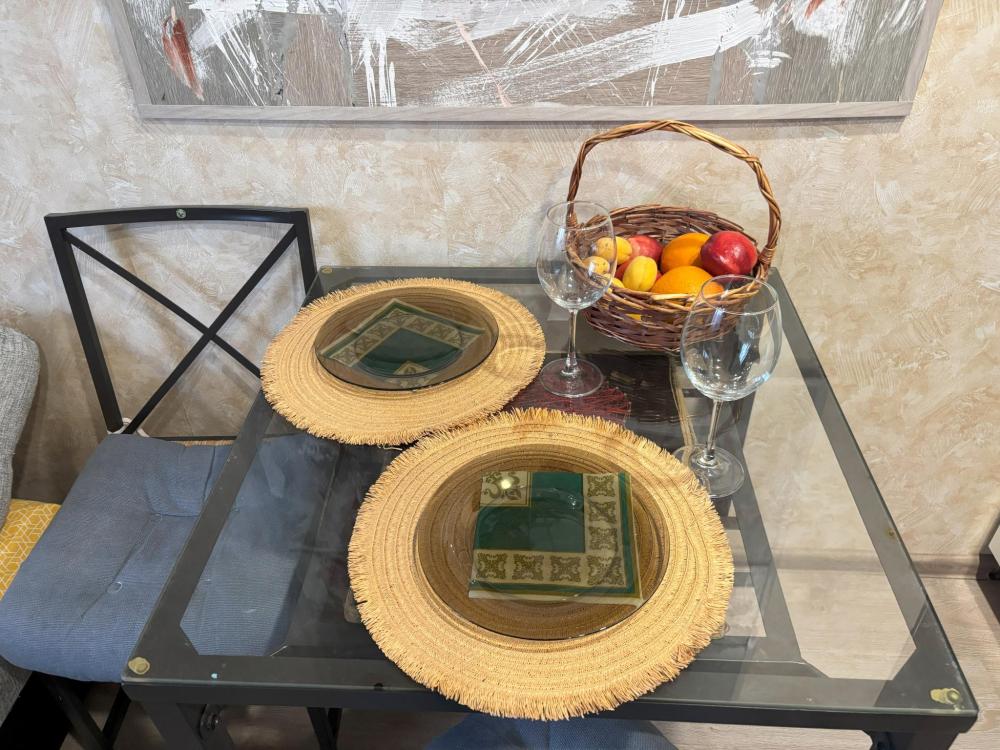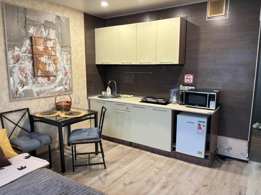 В апартаментах имеется все необходимое для комфортного проживания : удобные спальные места, постельное белье, Wi-Fi, SMART ТV, кухонный гарнитур , необходимая техника и посуда, чай, кофе, соль, сахар, набор полотенец 2-х размеров, тапочки, фен, гладильные принадлежности, сушилка, средства гигиены(гель для душа, шампунь, жидкое мыло, зубной набор)
