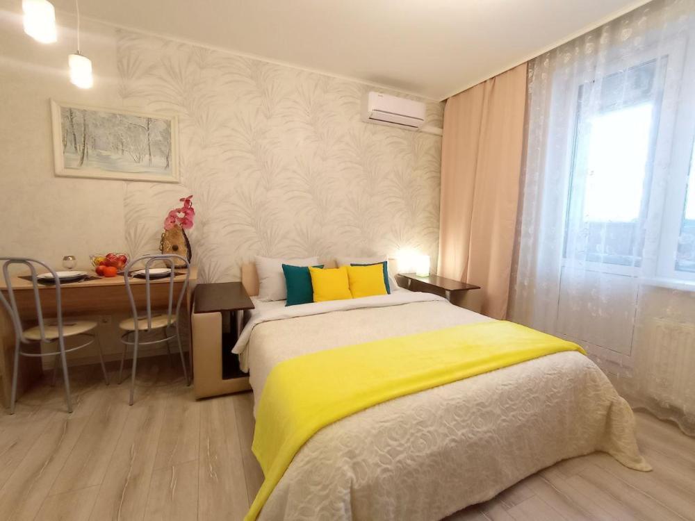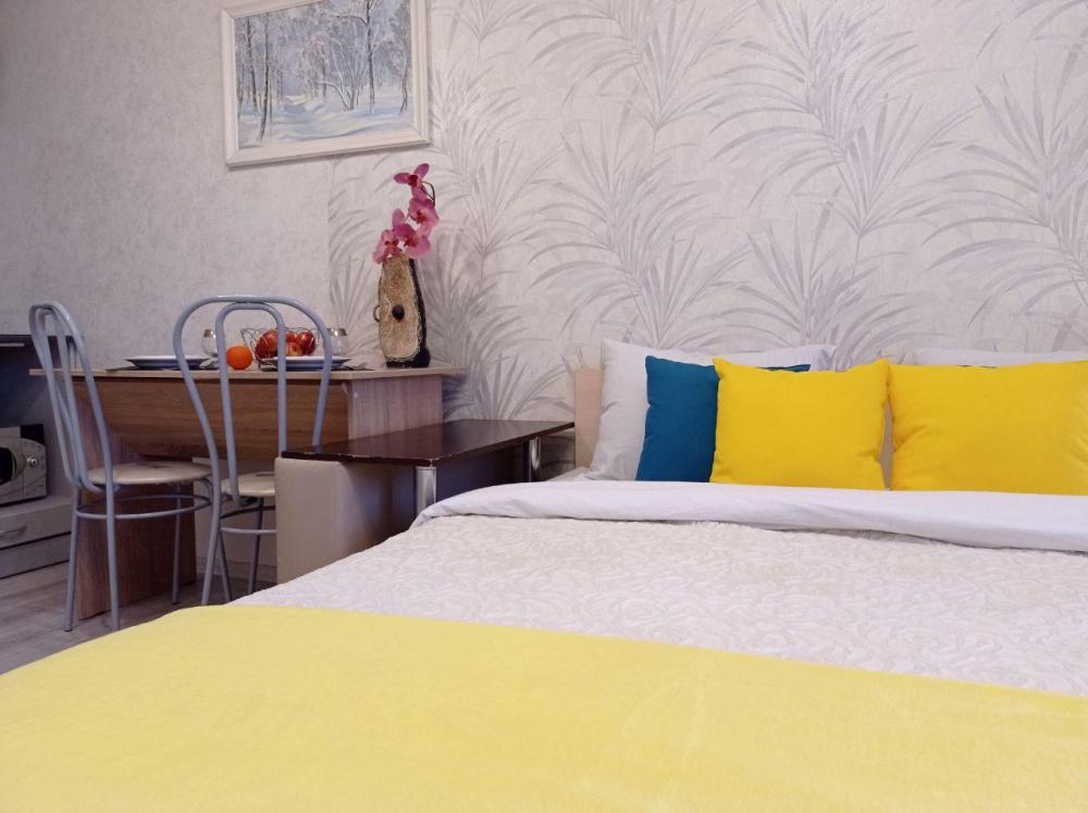 Современная квартира-студия по улице Творчества в ЖК Домодедово Парк. Расположена на 14 этаже. Подходит для командировок и отдыха. Количество гостей 2+1. Возможно проживание с детьми. Для проживания гостей предоставляют: всю необходимую бытовую технику (стиральную машинку, холодильник, фен, большой телевизор, утюг, микроволновую печь, чайник), Wi-fi, удобную укомплектованную кухню с обеденной зоной, двуспальную кровать с удобным матрасом и чистым постельным бельем, раскладное-кресло, опрятный санузел и просторную ванну. Квартира находится в тихом месте, не слышен шум машин.