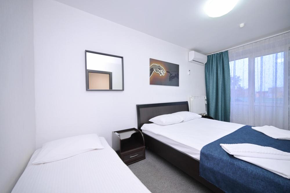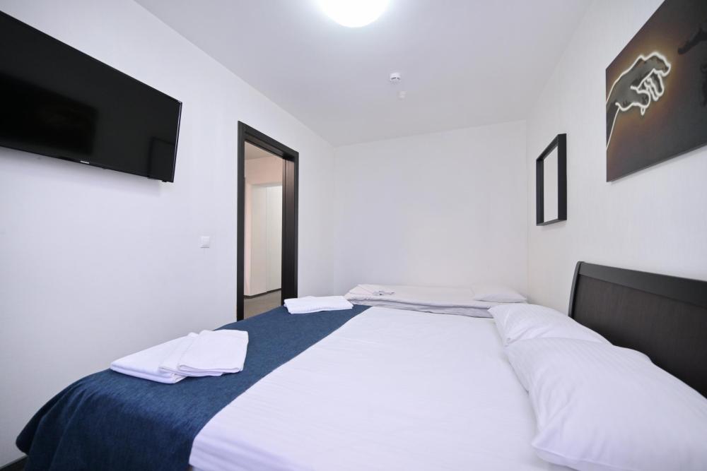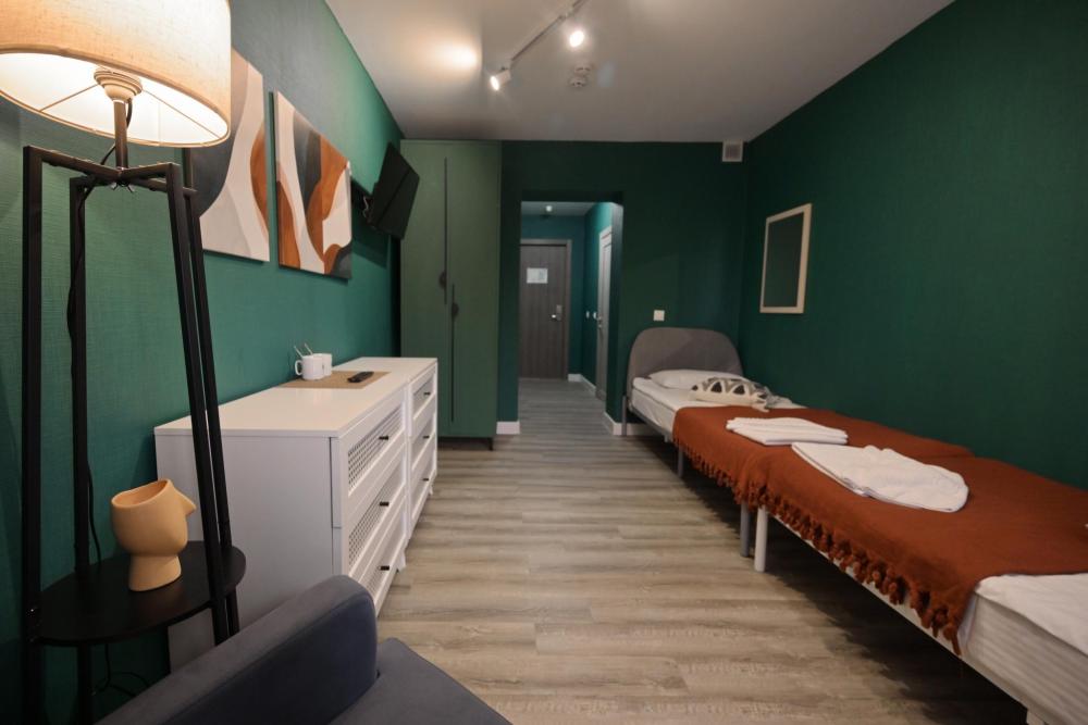 Одна из комнат в блоке с общим санузлом и душем. Комната с двумя раздельными кроватями. В комнате: телевизор, кондиционер, шкаф, стол, стул. Удобства на 4 комнаты в общем холле. Завтрак не входит в стоимость проживания