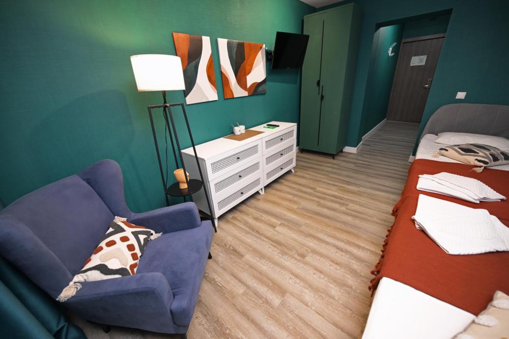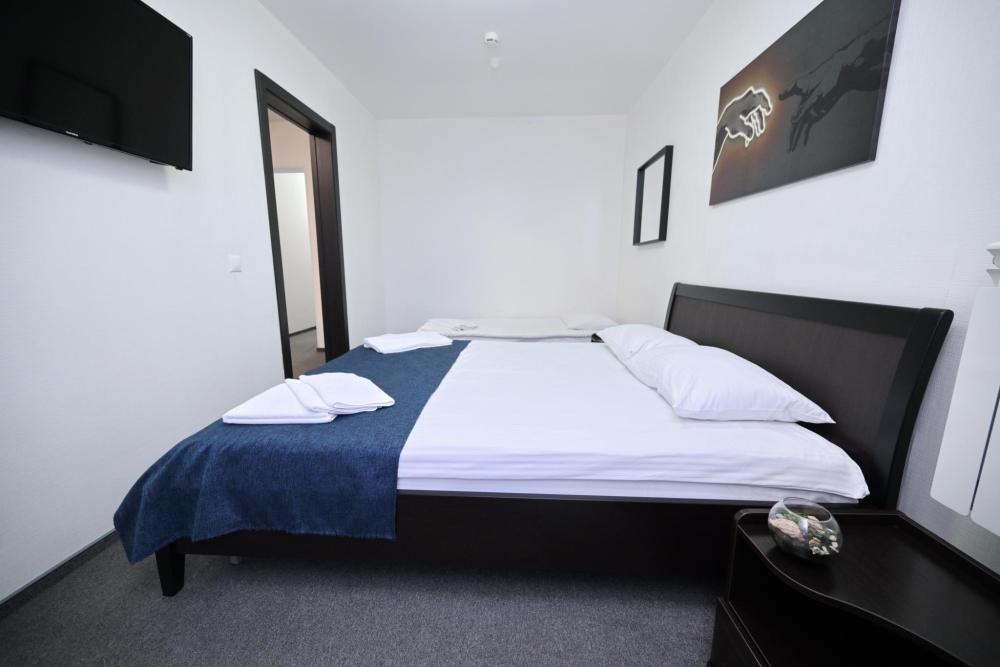 Стандарт - одна комната с односпальной и двухъярусной кроватями. Подходит для размещения семьи с двумя детьми. Телевизор, кондиционер, санузел в комнате. Завтрак не включен