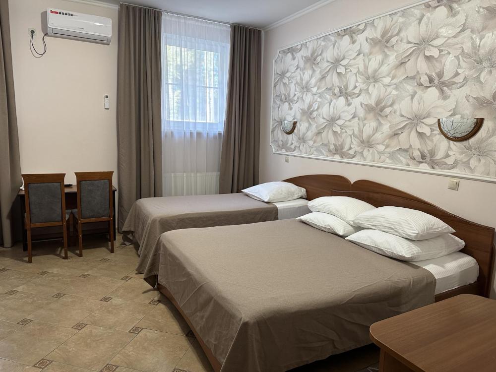 В номере: две раздельные кровати, телевизор, телефон, ванная комната, фен, набор одноразовой косметики, комплект полотенец.