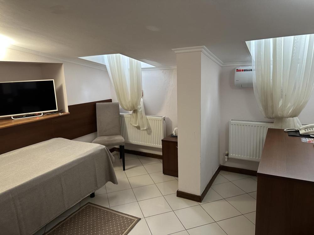 Одноместные номера эконом класса расположены на мансардном этаже. Высота потолков в номерах данной категории ограничена. В номере: односпальная кровать, телевизор, телефон, ванная комната с душем, фен, набор одноразовой косметики, комплект полотенец