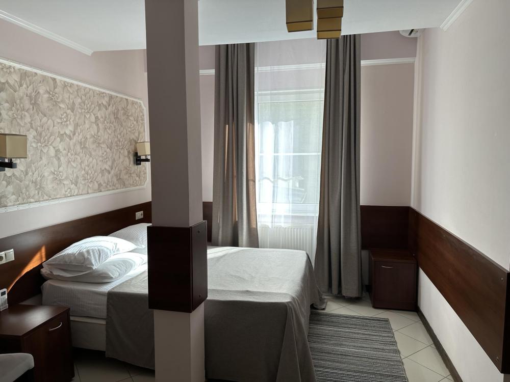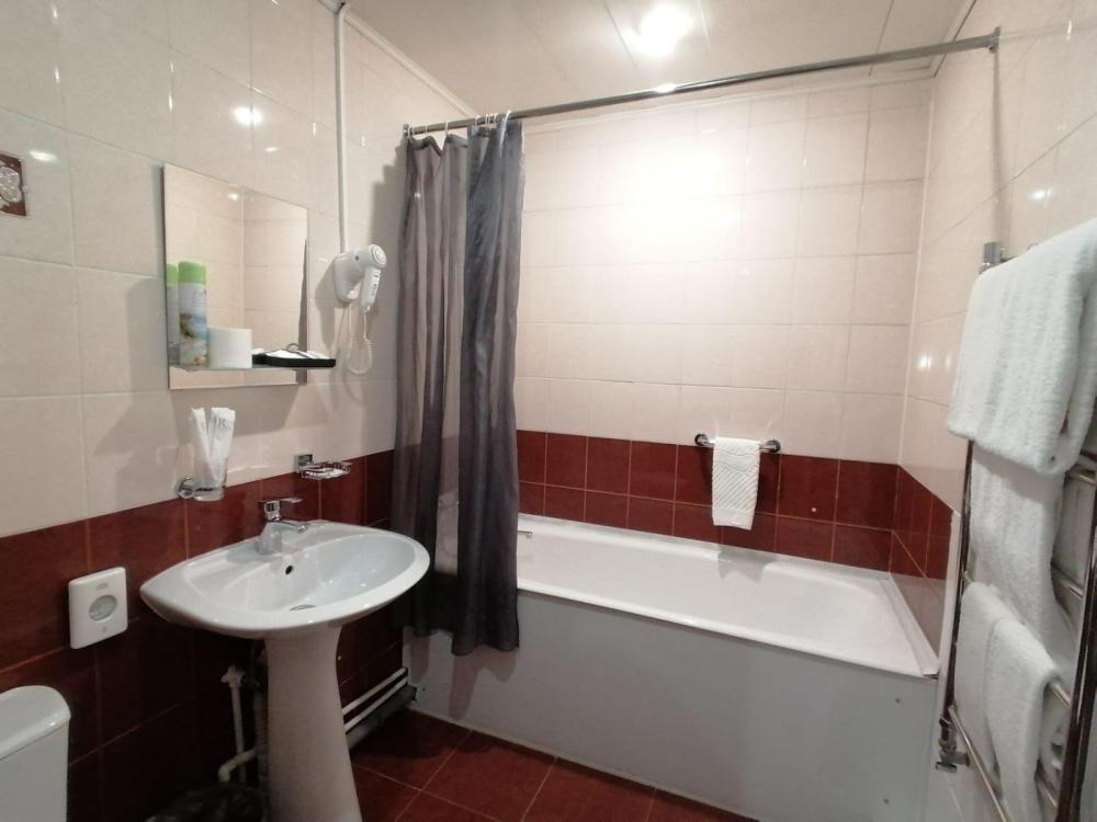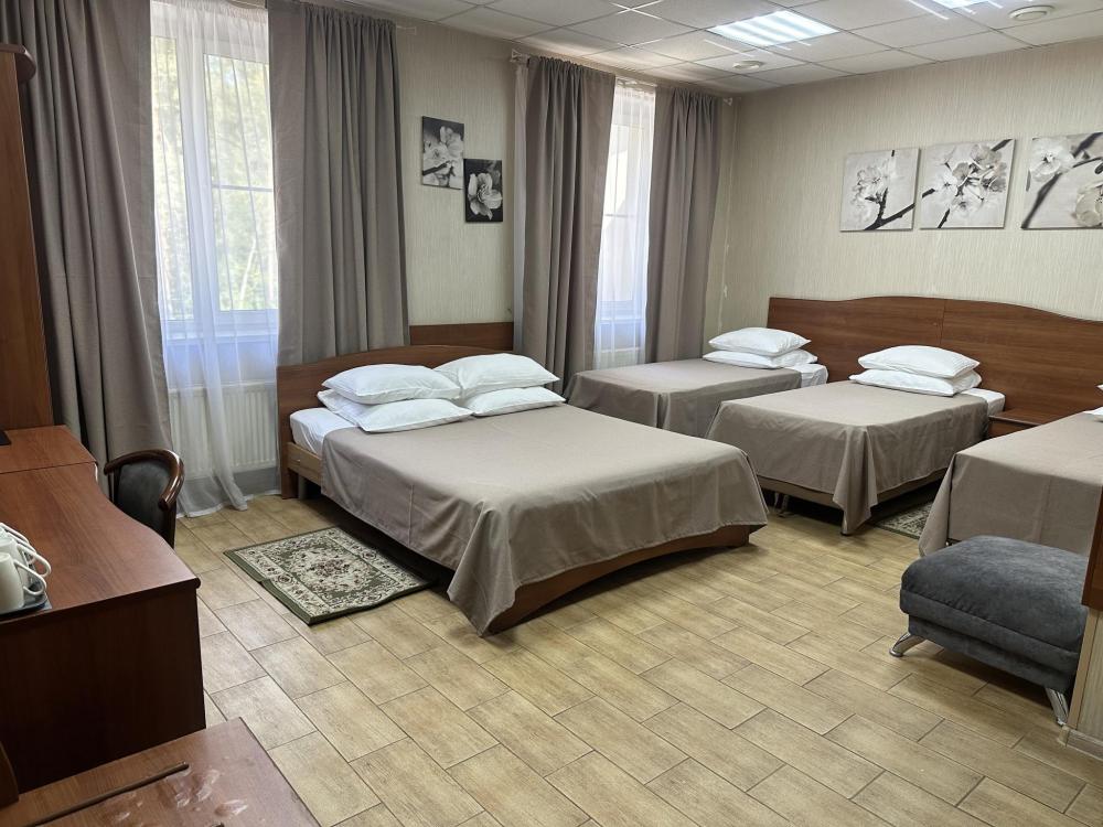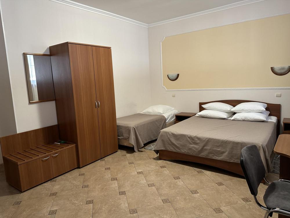 Комплектация номеров: одна кровать 140см; холодильник; телевизор; телефон; санузел-душ / санузел-ванна; фен; набор одноразовой косметики;