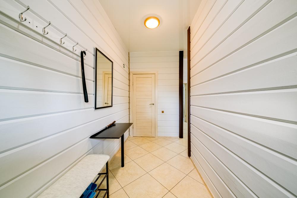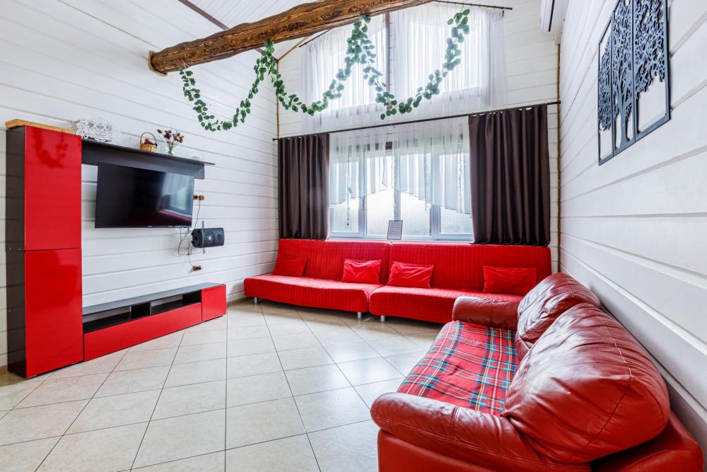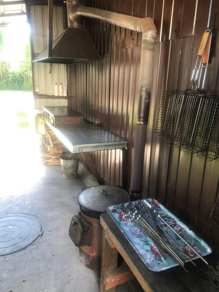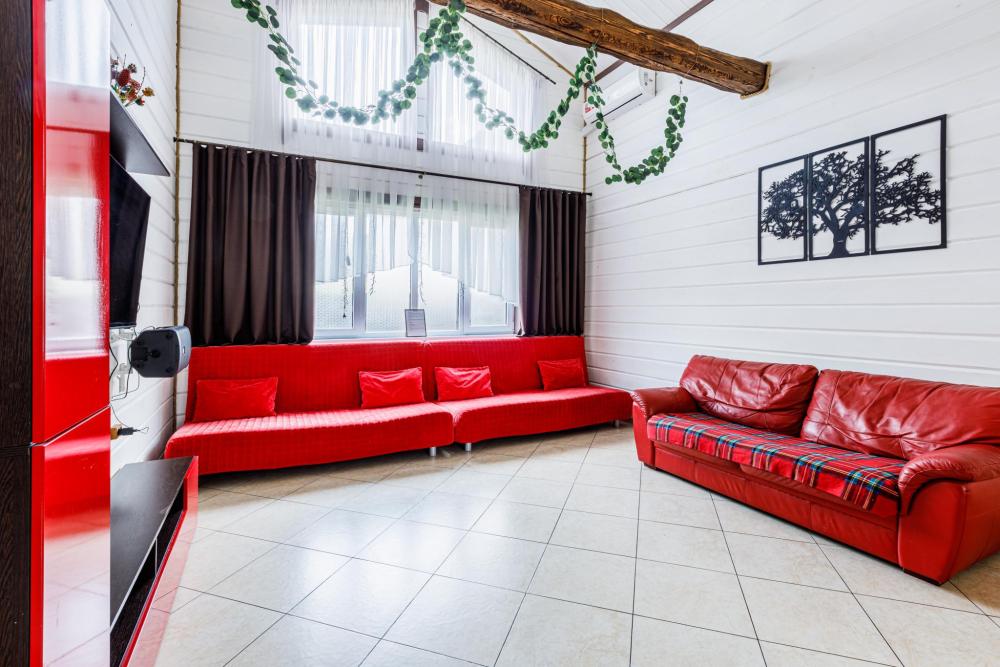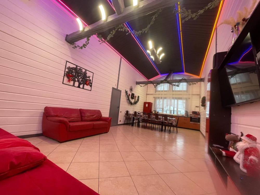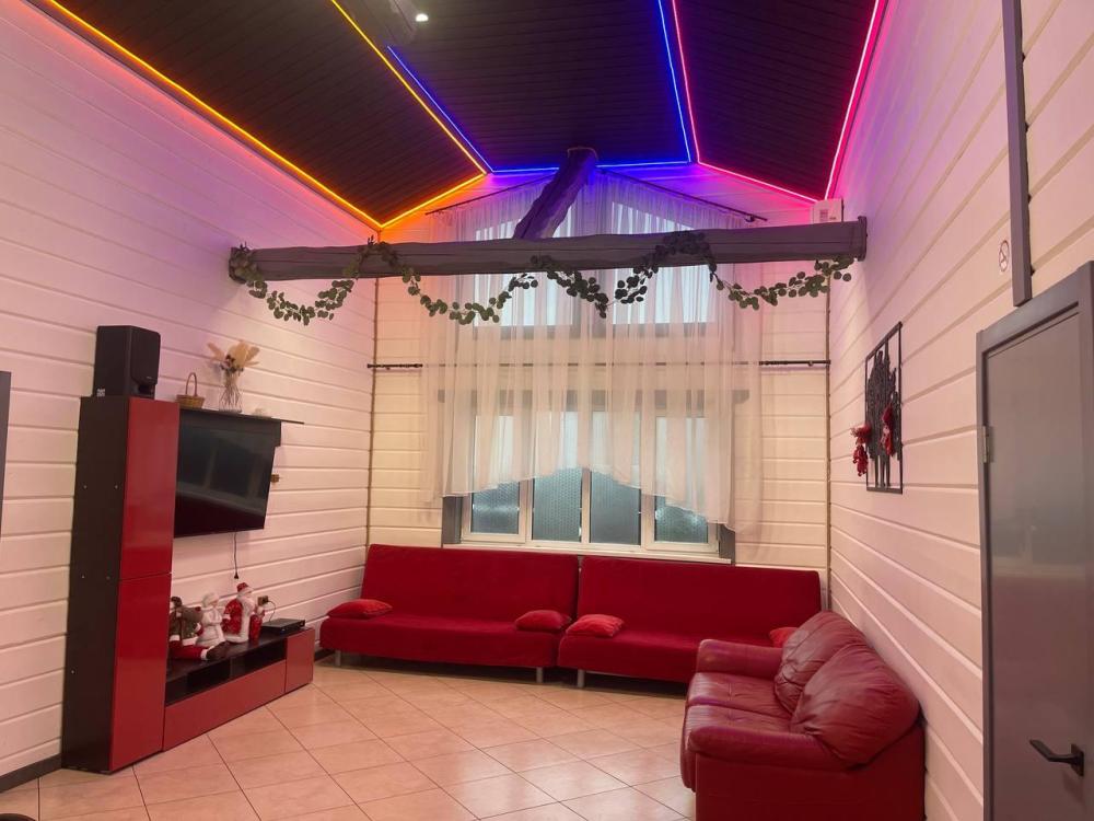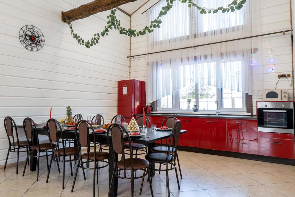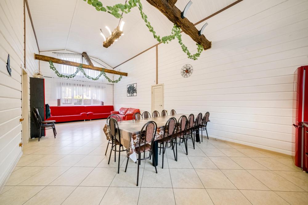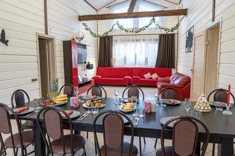 Дом абсолютно новой постройки оснащён всем необходимым для комфортного проживания. В доме 5 спален и зал-гостиная с раскладными диванами и комната для курения - комфортно может разместиться до 16 человек. Спальные места представлены 6 двуспальными кроватями (в 4 комнатах по одной и в 1 комнате две) и 2 двуспальными диванами в гостиной. Имеется большой стол на 16 персон. Также дом оборудован необходимой бытовой техникой (посудомоечная машина, аудиосистема, стиральная машина, духовка, микроволновая печь, плита, чайник, фен). Присутствуют вся необходимая посуда, колонка, настольные игры, бесплатный высокоскоростной Wi-Fi. На территории дома имеются мангальная зона со всеми необходимыми принадлежностями (шампуры, решетки, казан), большая беседка на 16 персон, баня.
