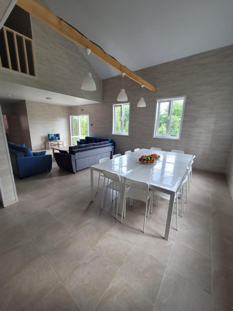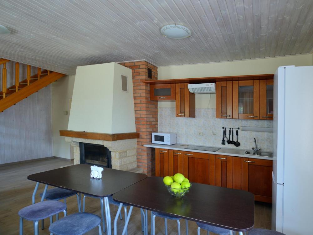 Коттедж Калина общей площадью 162 кв.м. для размещения до 10-ти гостей (8 основных мест, 2 дополнительных места). Первый этаж: гостиная с камином, спальня с двумя односпальными кроватями, кухня - столовая, санузел, душ; Второй этаж: две спальни с односпальными кроватями, санузел.