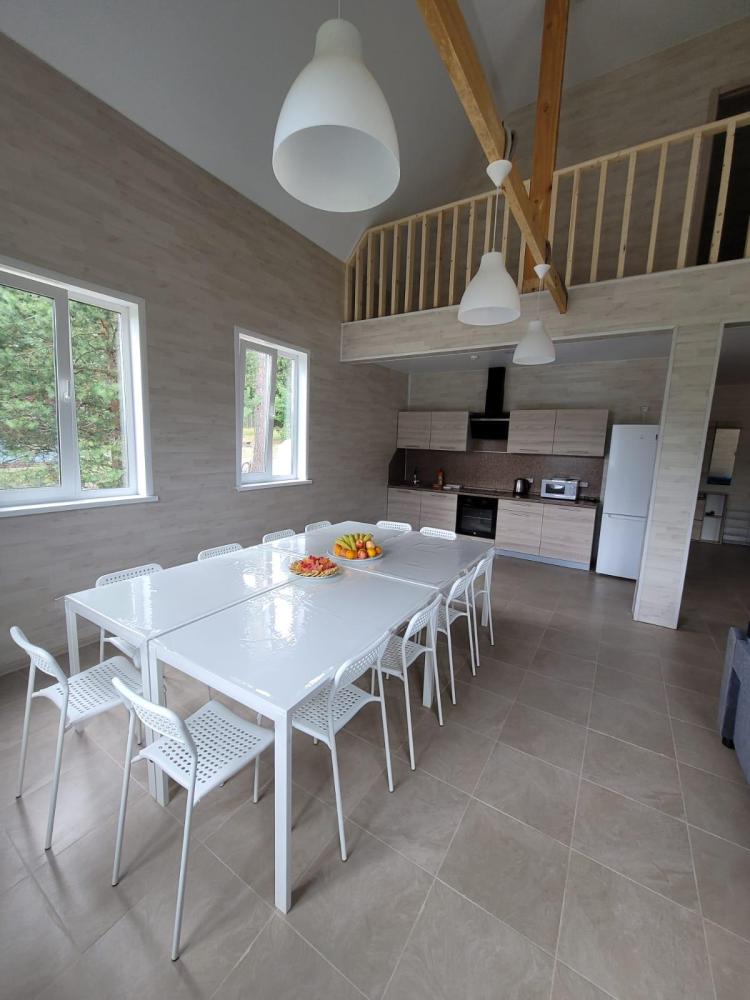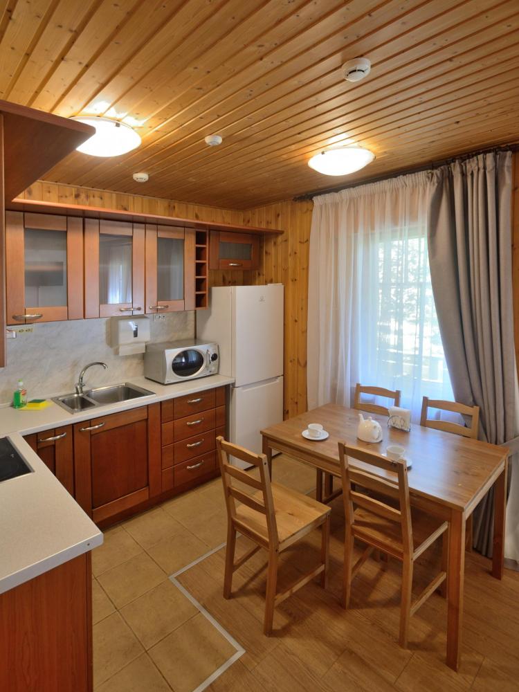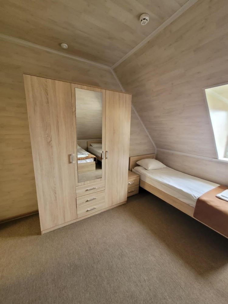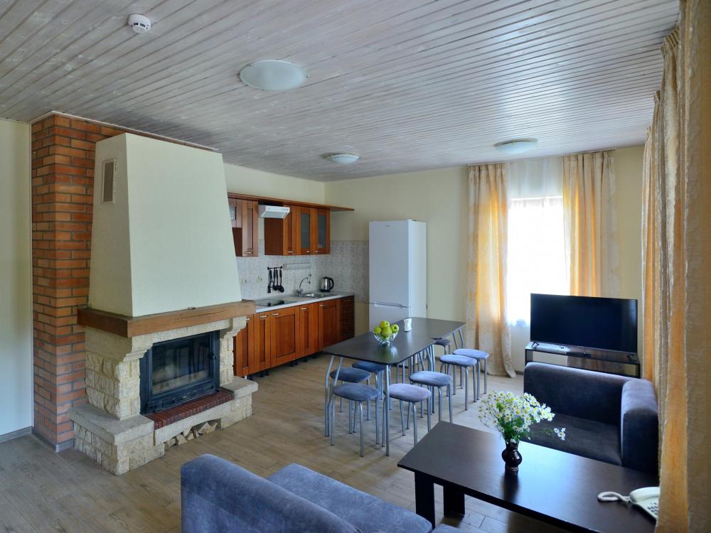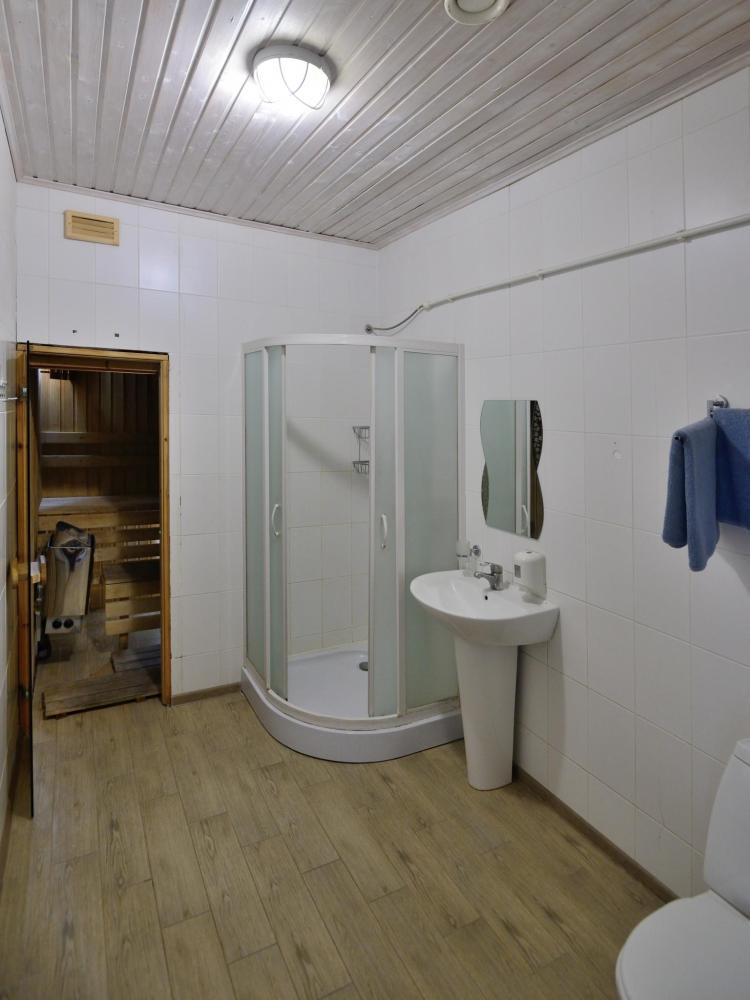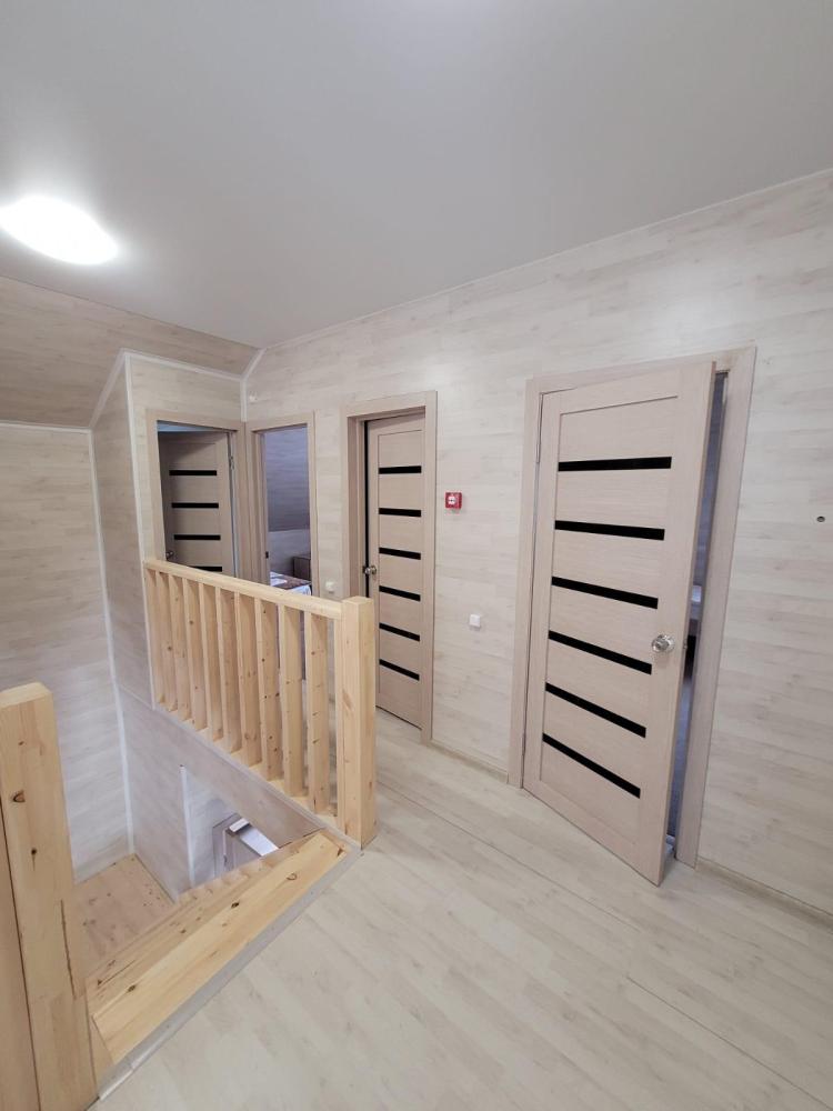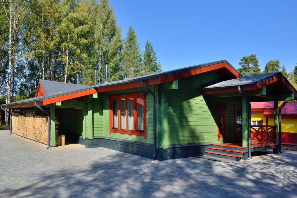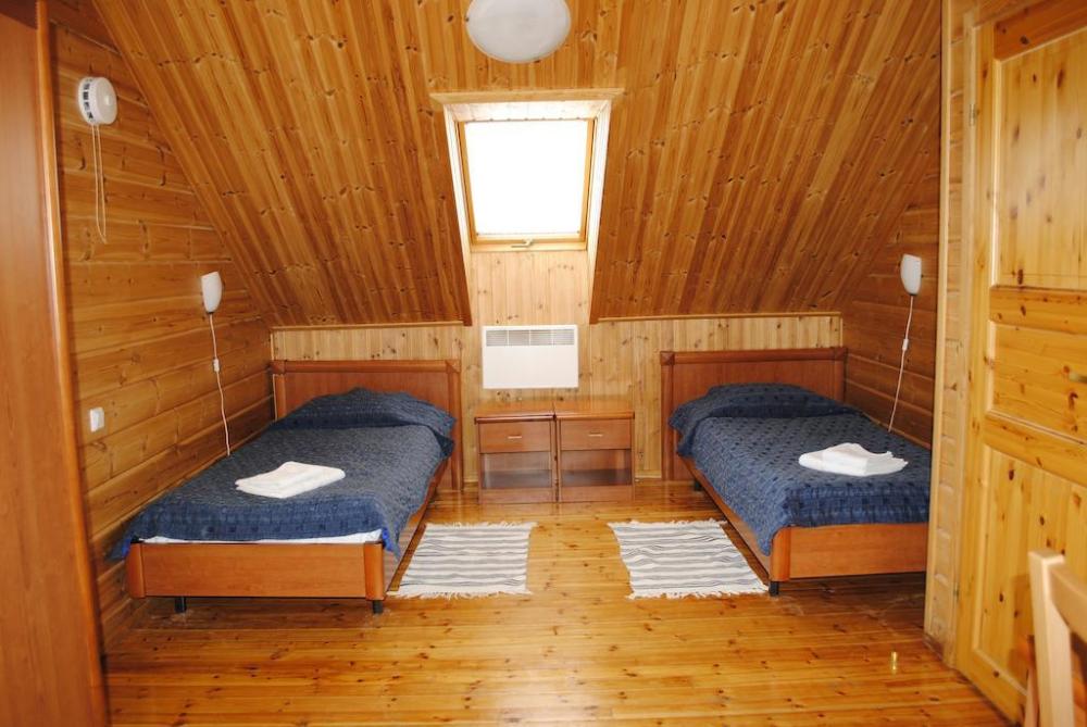 Коттедж Ольха обшей площадью 152 кв.м. для размещения до 8-ми гостей (6 основных мест, 2 дополнительных места). Первый этаж: гостиная с дровяным камином, спальня с двумя односпальными кроватями, кухня - столовая, сушильный шкаф, сауна, санузел с душем; Второй этаж: две спальни с односпальными кроватями или двухспальной кроватью, санузел.