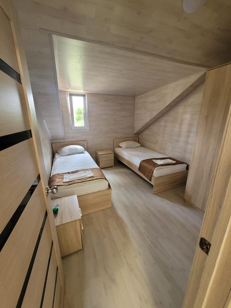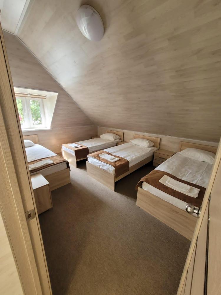 Просторный коттедж площадью 152 м2 отлично подойдет для большой компании и рассчитан на 24 человека. Большая гостиная, кухня - столовая, девять спален с односпальными кроватями, на 1-м этаже- (1 кровать, 2 кровати, 3 кровати и 3 кровати), на 2-ом этаже- (3 кровати, 4 кровати, 2 кровати , 3 кровати и 3 кровати), на каждом этаже по два санузла и две душевые.