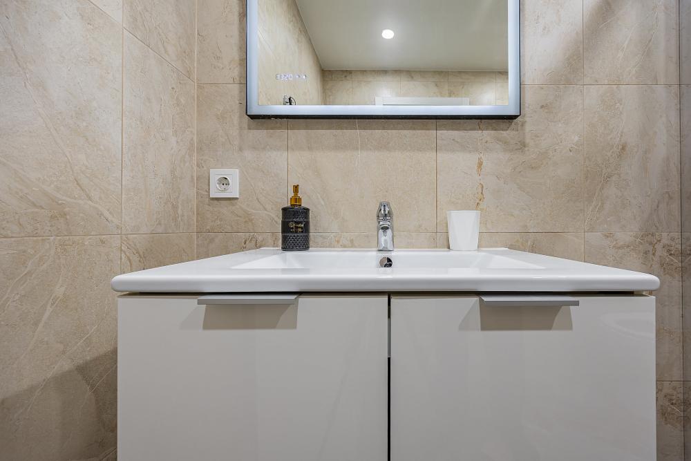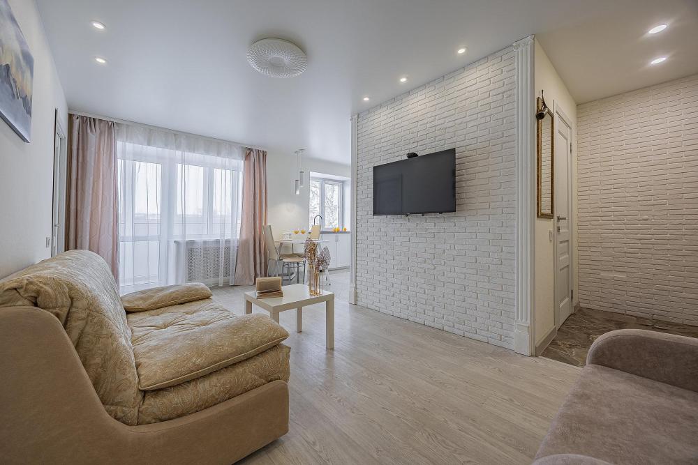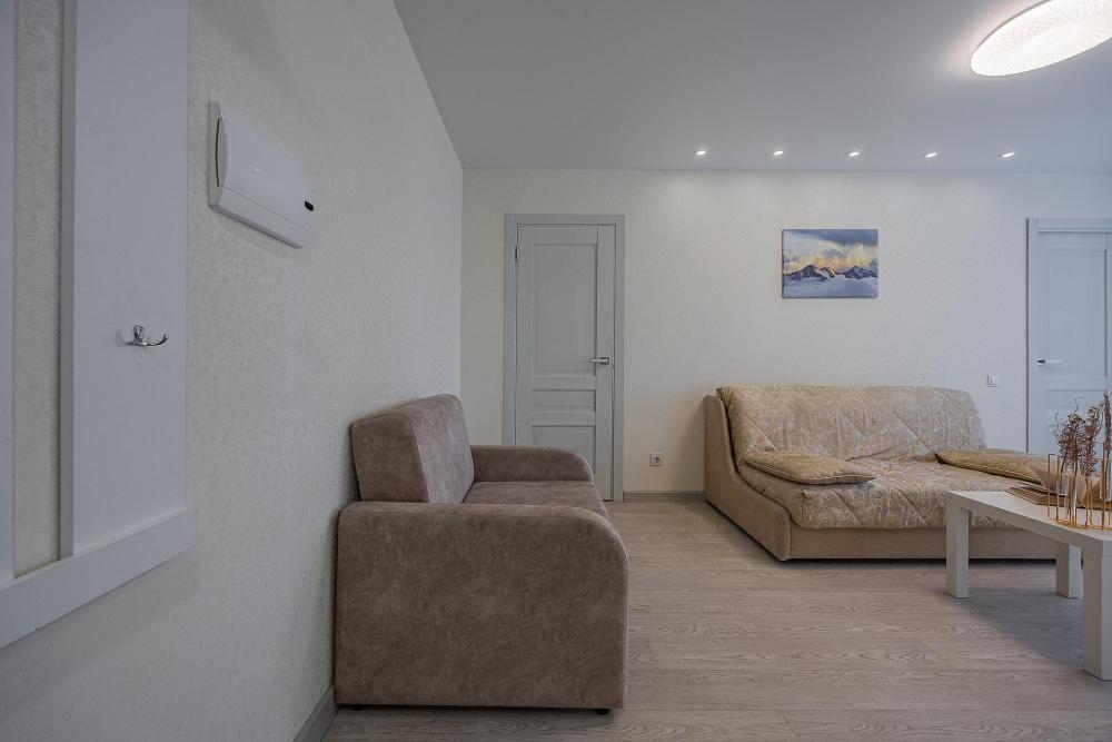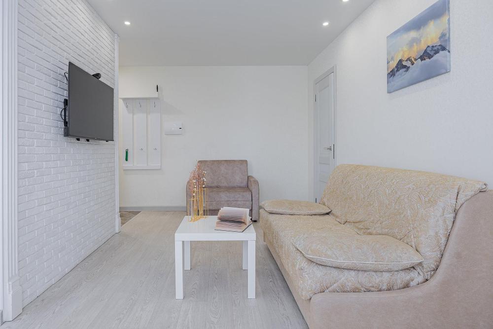 В квартире возможно размещение до 4 гостей. Есть все необходимое для комфортного проживания: современная мебель, двуспальная кровать, двуспальный диван, бытовая техника, Smart телевизоры, скоростной WI-FI, спутниковое TV, гладильная доска, утюг, сушка, оборудованная кухня, комплект посуды для приготовления и приёма еды, фен.