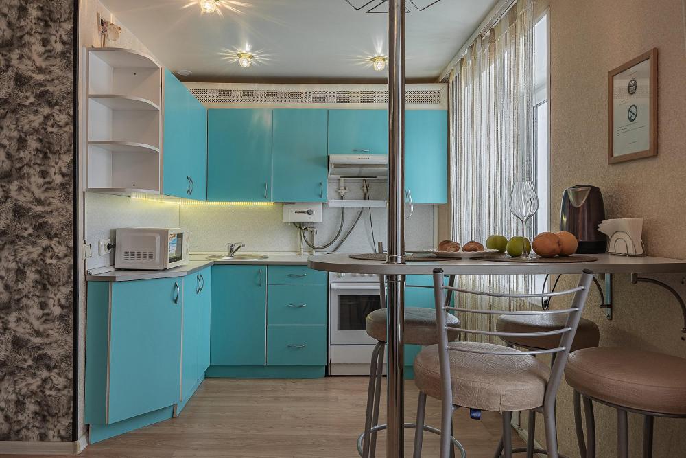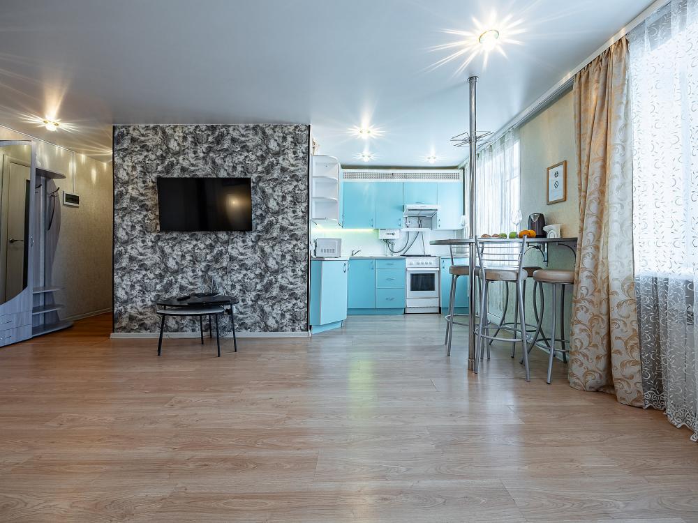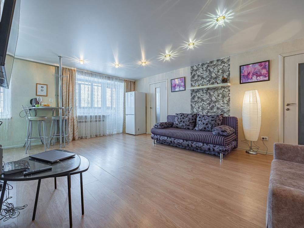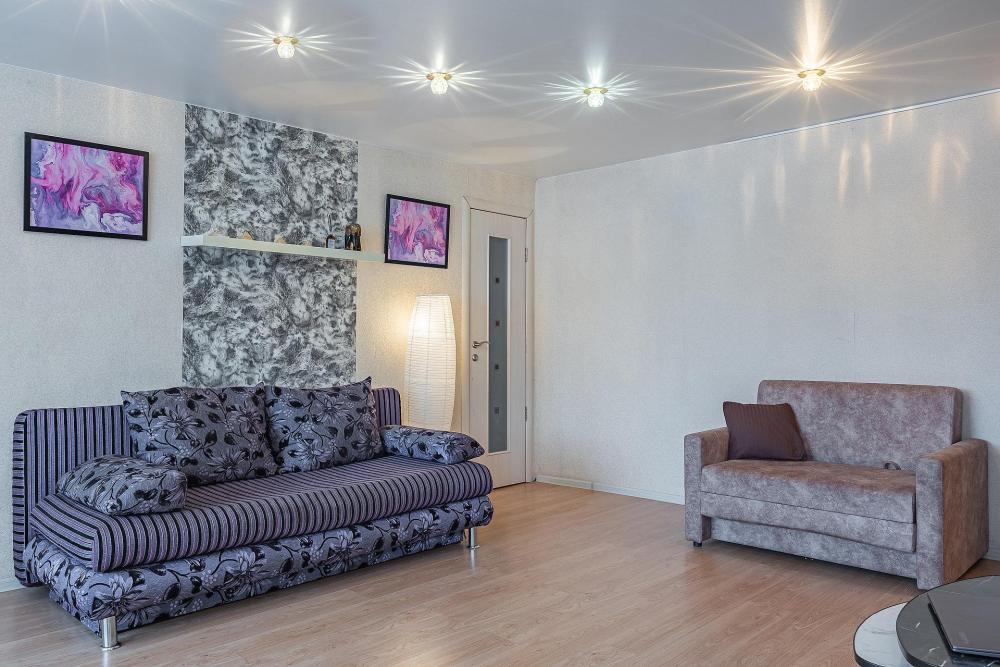 В квартире возможно размещение 4 гостей. Есть все необходимое для комфортного проживания: современная мебель, двуспальная кровать, двуспальный диван, кресло-кровать,бытовая техника, телевизоры, скоростной WI-FI, спутниковое TV, гладильная доска, утюг, сушка, оборудованная кухня, комплект посуды для приготовления и приёма еды, фен.