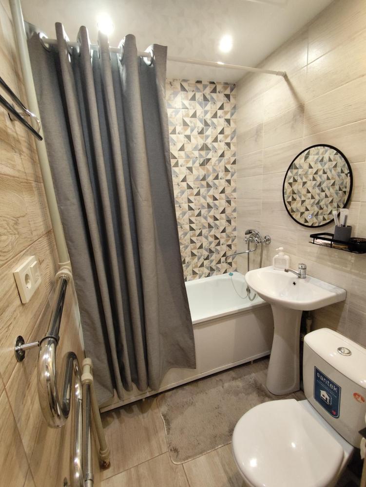 Уютная квартира с тремя спальными местами — двуспальной кроватью и диваном, оснащенная новым матрасом и тёмными шторами для комфортного сна. В наличии: плазменный телевизор и безлимитный Wi-Fi интернет. Полностью оборудованная кухня включает варочную поверхность, обеденный стол на 2 персоны, электрочайник, микроволновую печь, холодильник и стиральную машину. В квартире также есть большие полотенца, фильтрованная вода, чай, сахар, соль, одноразовые тапочки, туалетные принадлежности, гладильная доска и утюг для удобства проживания.