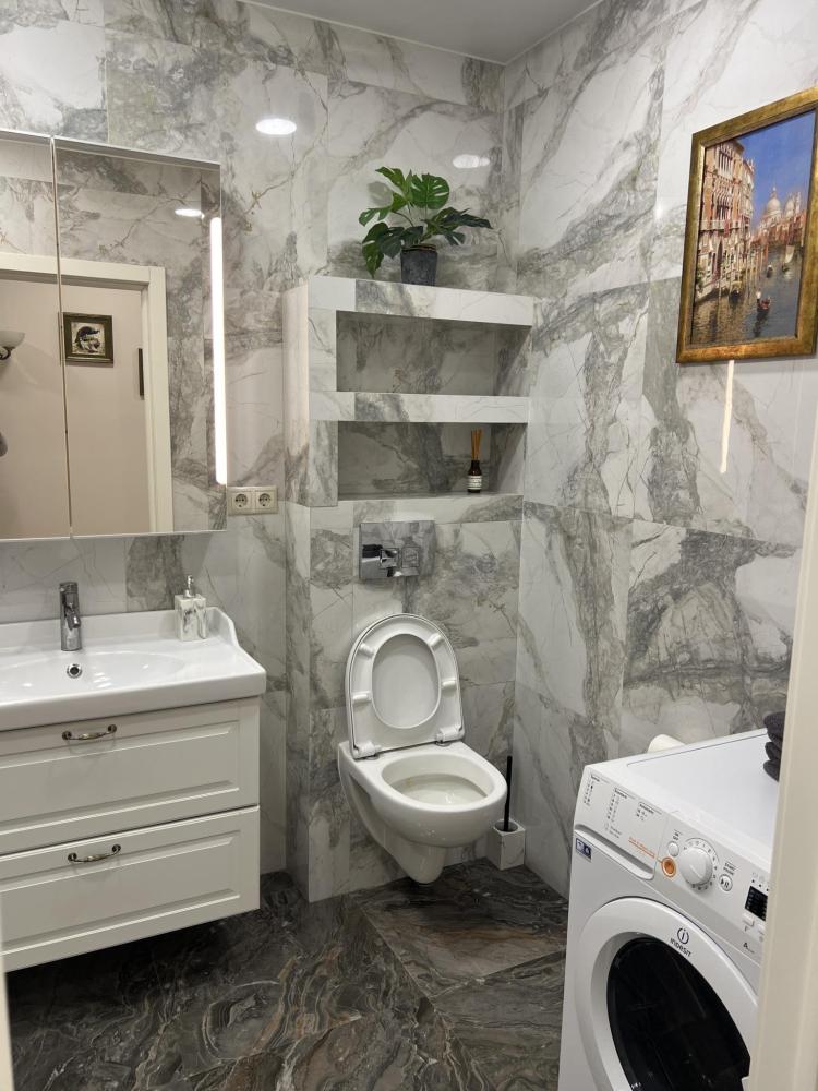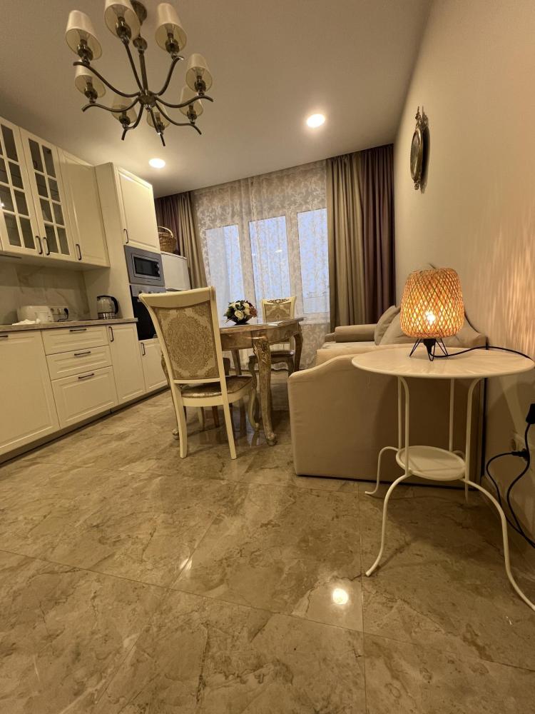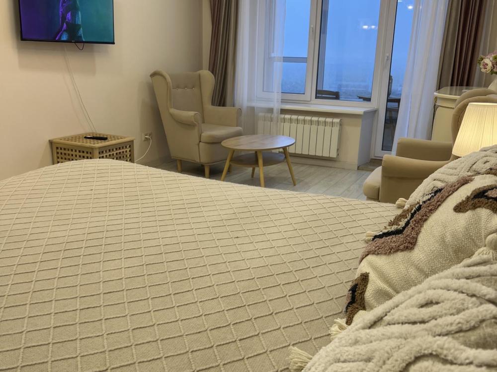 Квартира продумана для комфортного проживания — как для короткого отдыха, так и для более длительного проживания. В квартире есть всё необходимое: мягкая мебель, новое хлопковое постельное бельё и полотенца, шампунь, гель для душа, фен, утюг, гладильная доска, отпариватель, техника и удобства, Smart TV, Wi-Fi. Полностью оборудованная кухня: холодильник, встроенная духовка, микроволновка, посудомоечная машина, индукционная плита, тостер, электрический чайник, стиральная машина с функцией сушки, два санузла.