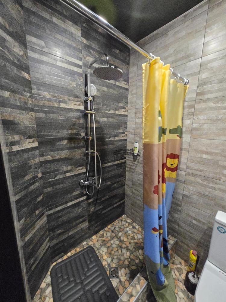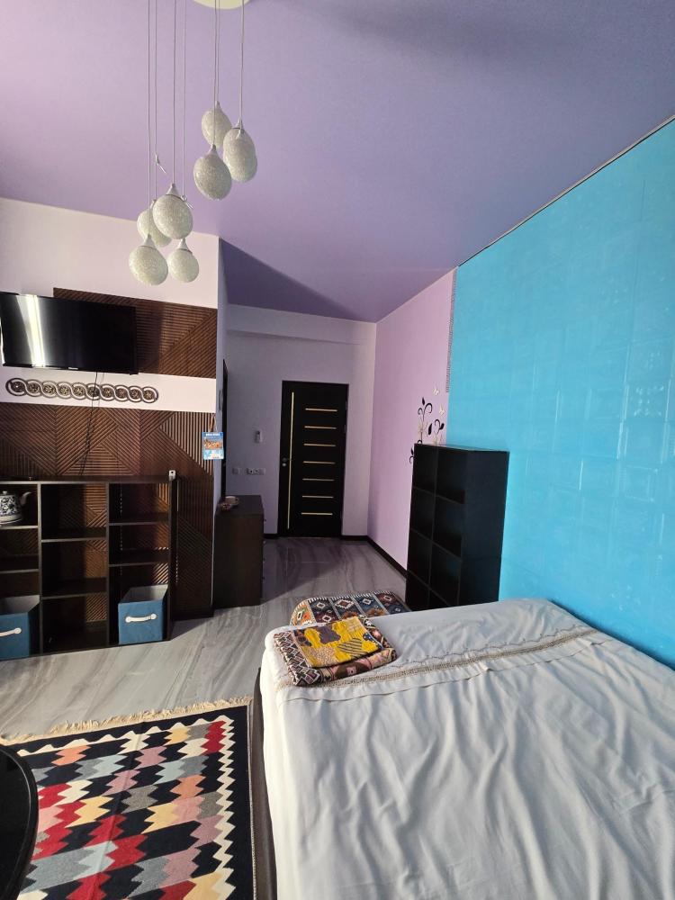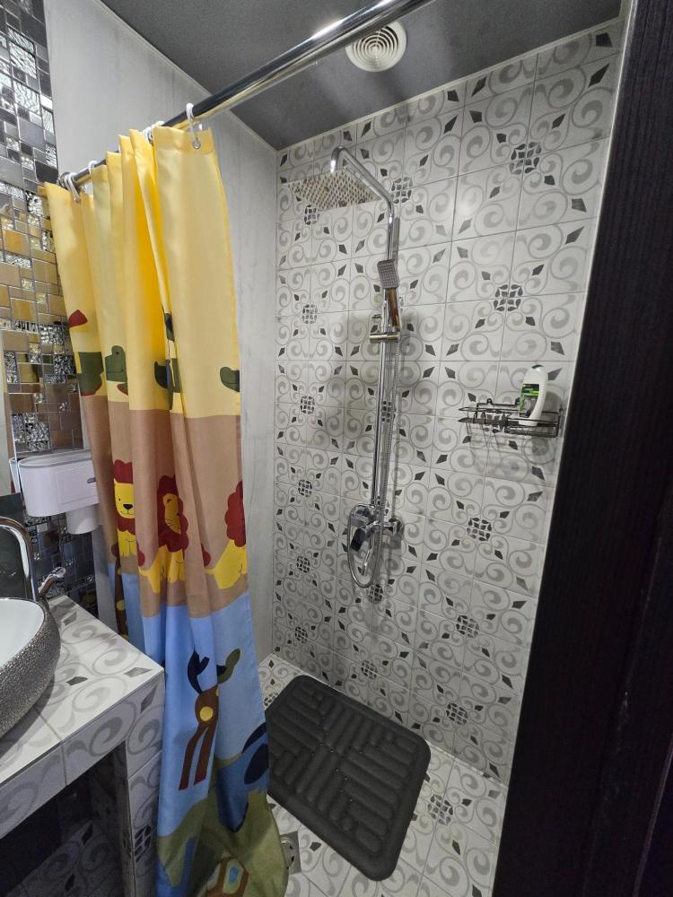 Уютный двухместный номер с национальными акцентами и современным комфортом. Спальня В центре комнаты расположена просторная двуспальная кровать с мягким изголовьем. Яркий восточный декор на стене и ковры с этническим орнаментом создают атмосферу уюта и погружают в местный колорит. Интерьер Фиолетовый потолок, светлые стены и большие окна с плотными шторами наполняют номер мягким светом и спокойной атмосферой. Уютный столик и два кресла у окна идеально подходят для утреннего кофе или вечернего отдыха. Современная ванная Стильная душевая в серых тонах оснащена современной системой «тропический душ» и удобной лейкой. Здесь всё продумано для вашего комфорта. ❄ Удобства — Кондиционер — Бесплатный Wi-Fi — Простор и стиль в каждой детали ? Этот номер станет отличным выбором для пары, которая ищет сочетание национального колорита и современного удобства.