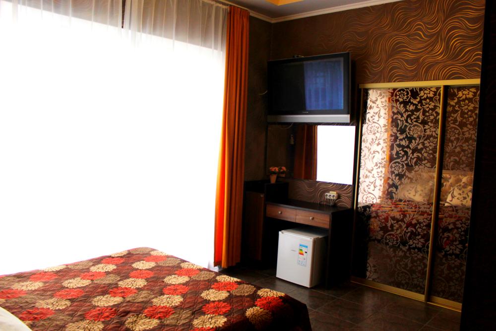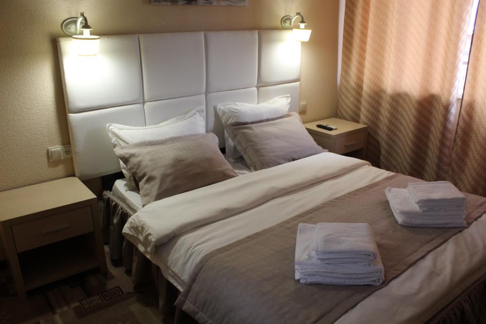 Номер категории люкс. Есть собственный санузел с душевой кабиной. Общая площадь номера — 30 кв.м., имеется отдельный вход с улицы.