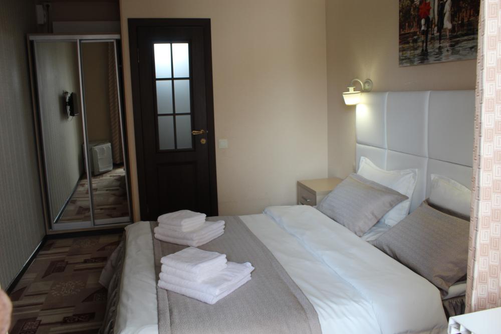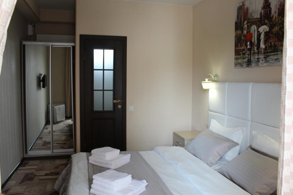 Однокомнатный 2-х местный номер. Общая площадь номера составляет 15 кв.м. В номере есть собственный санузел с душевой.