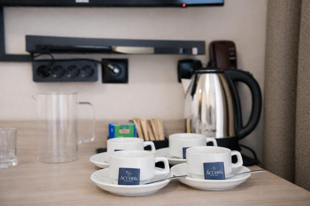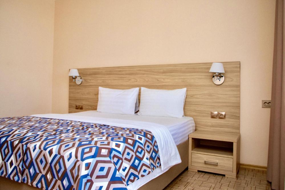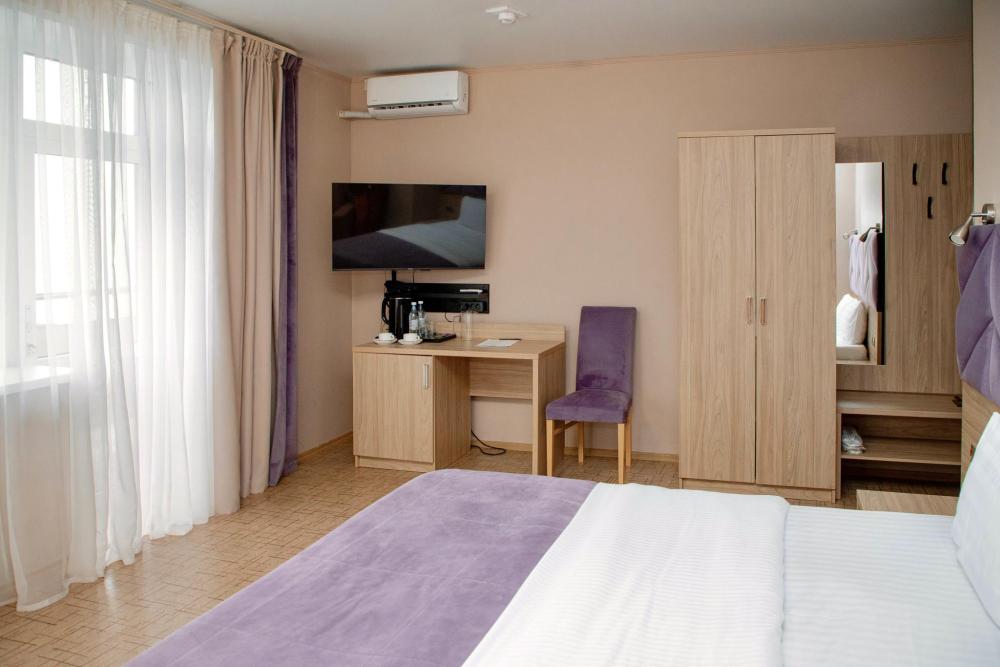 Стандарт с просторным балконом – уютный двухместный номер в бутик-отеле «АССОЛЬ», идеально подходящий для романтического отдыха на берегу Азовского моря. Этот номер площадью 17 м² сочетает стильный интерьер, продуманный комфорт и привлекательный вид на город. Номер укомплектован двуспальной кроватью, двумя прикроватными тумбами, шкафом для одежды, рабочим местом. Номер оснащен индивидуальной системой кондиционирования, телевизором, холодильником, бесплатным Wi-Fi, чайником. Ванная комната оснащена душевой кабиной и укомплектована набором полотенец, феном.