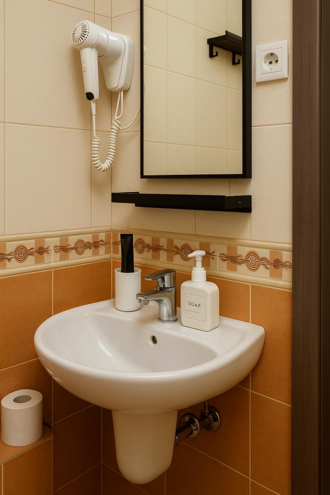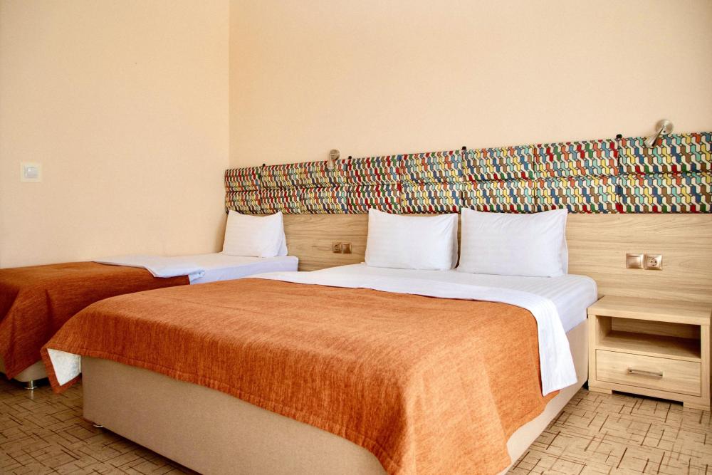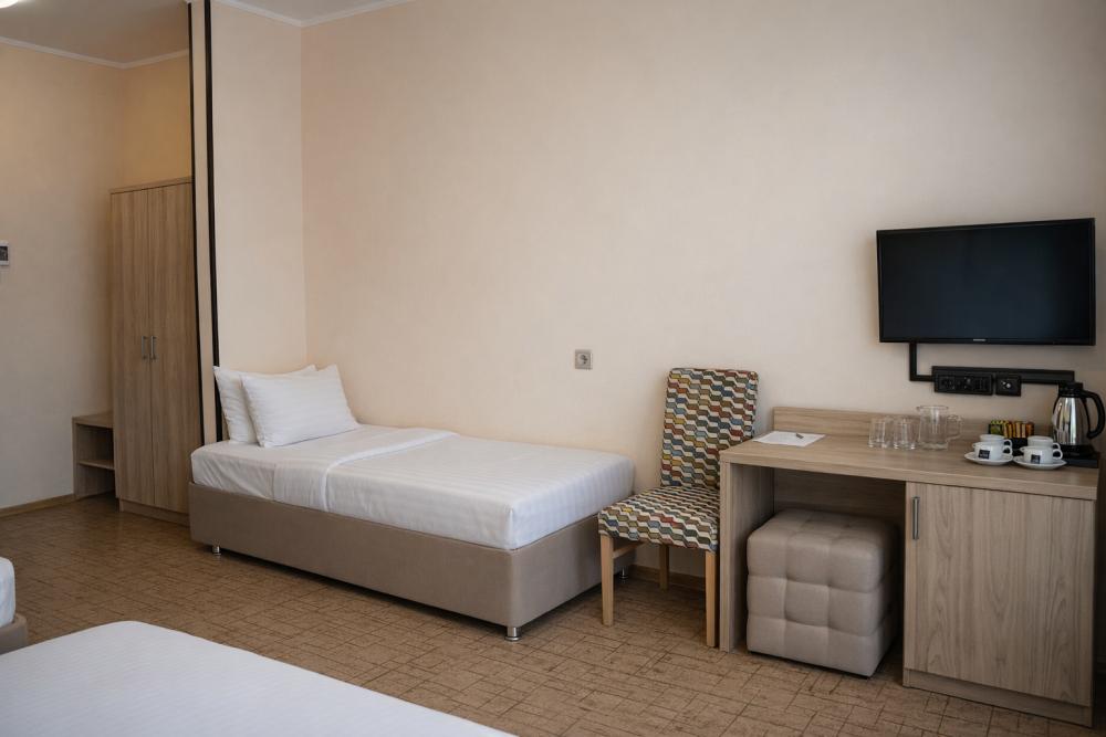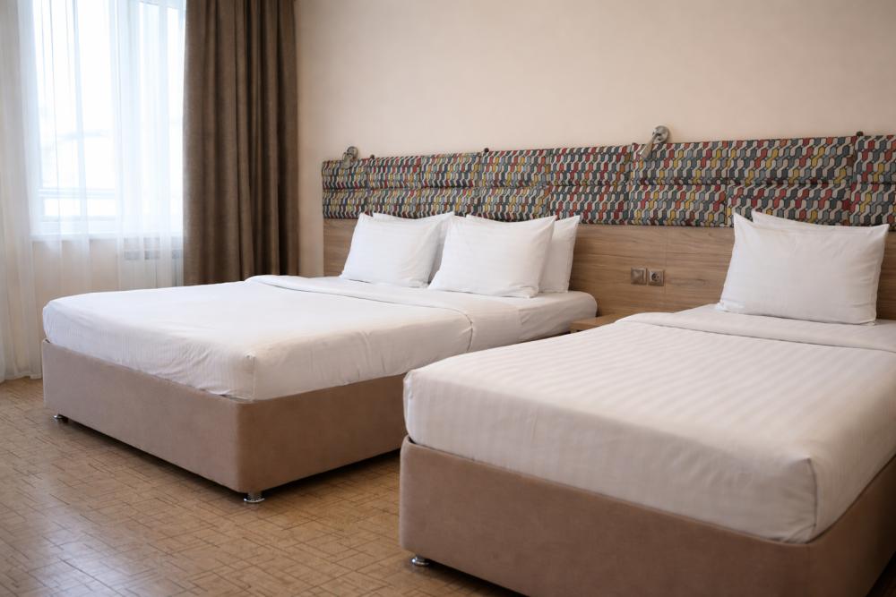 Стандартный трёхместный однокомнатный номер с балконом, общей площадью от 21 кв. м до 25 кв. м, с видом на город. Укомплектован тремя односпальными кроватями или двухспальной кроватью и раскладным диваном, шкафом для одежды, рабочим местом. Номер оснащен индивидуальной системой кондиционирования, телевизором, холодильником, бесплатным Wi-Fi, чайником. Ванная комната оснащена душевой кабиной и укомплектована набором полотенец, феном.