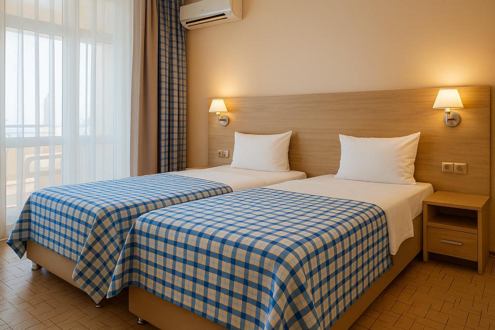 Супериор с просторным балконом и двумя раздельными кроватями – идеальный вариант проживания для тех, кто отдыхает вдвоём, семьёй или путешествует с друзьями в Ейске. Бутик-отель «АССОЛЬ» предлагает этот стильный и комфортный номер площадью 22 м², оборудованный просторным балконом с видом на город, где приятно провести утро или вечер, наслаждаясь приятной атмосферой курорта. Главная особенность номера – удобные раздельные кровати, которые по желанию гостей легко объединяются в одну большую кровать, создавая условия для максимально комфортного отдыха.