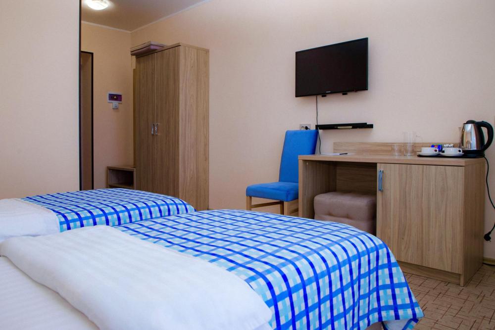 Стандартный двухместный однокомнатный номерс балконом и видом на море, общей площадью от 18 кв. м до 21 кв. м. Укомплектован двуспальной кроватью или же двумя раздельными односпальными кроватями, рабочим местом, шкафом для одежды. Номер оснащен индивидуальной системой кондиционирования, телевизором, холодильником, бесплатным Wi-Fi, чайником. Ванная комната оснащена душевой кабиной и укомплектована набором полотенец, феном.