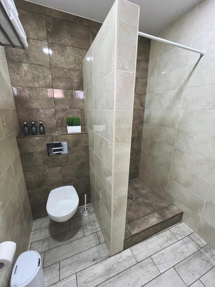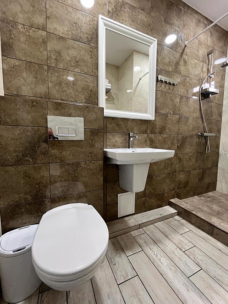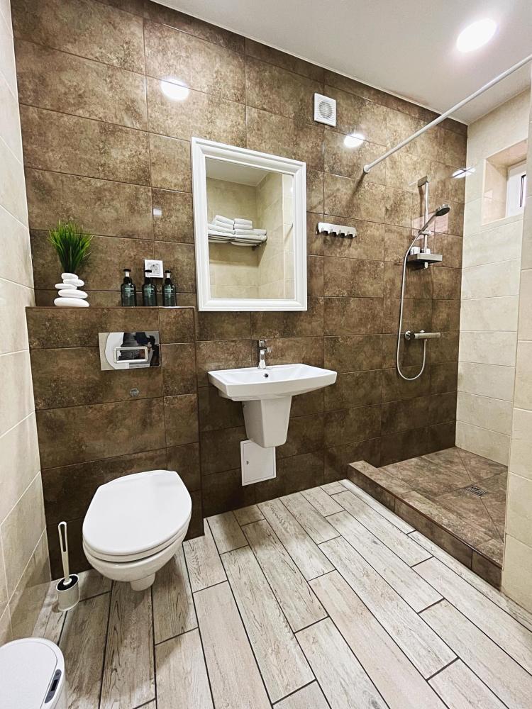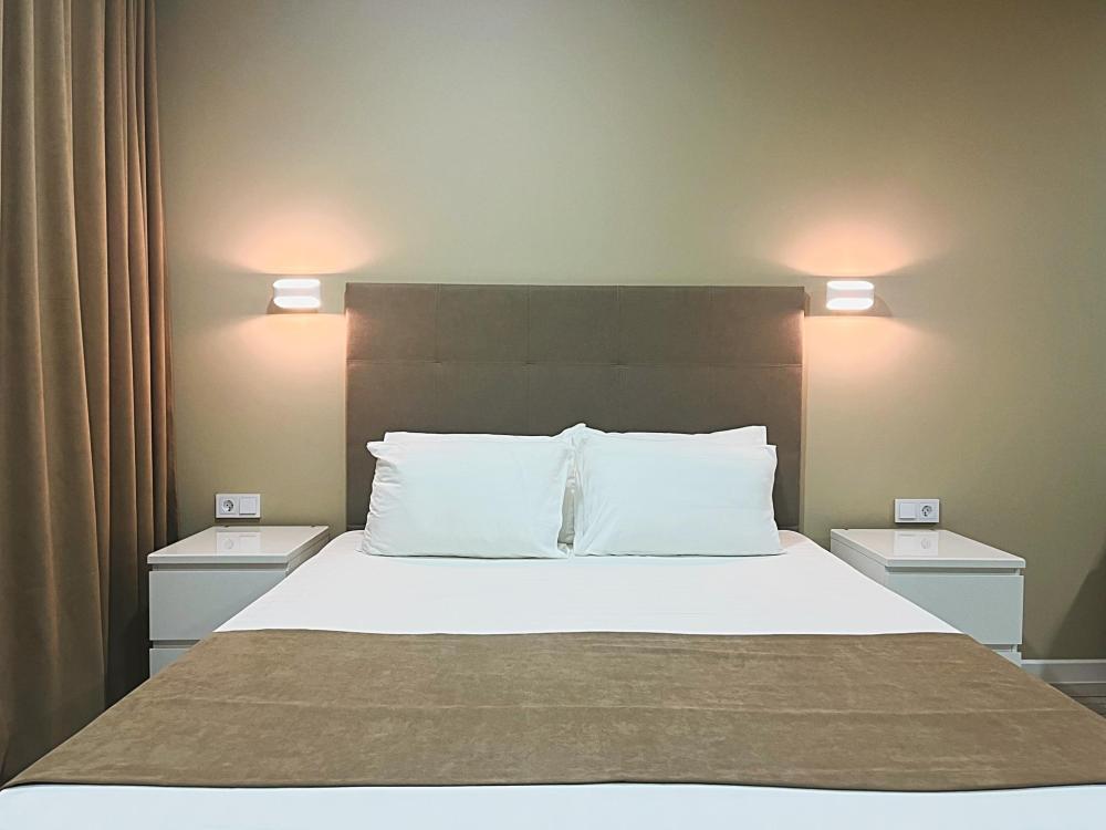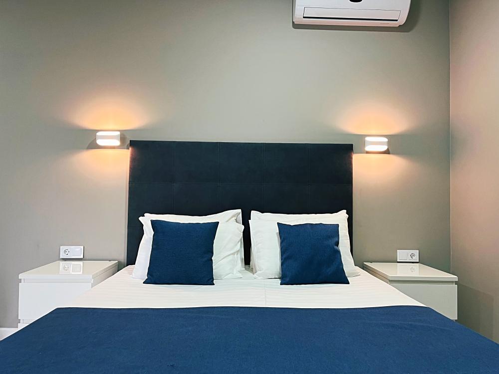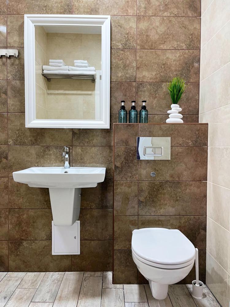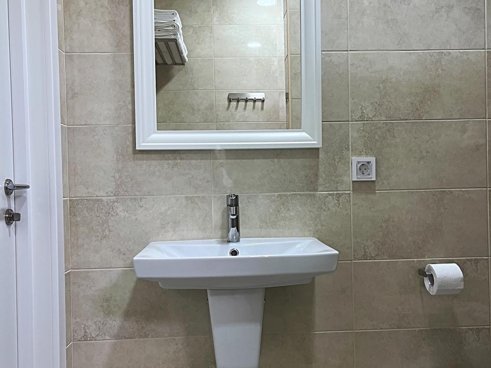 Семейный номер с большой двуспальной кроватью и диваном кроватью на два места. Расположен на первом этаже здания. Имеет собственную террасу с обеденным столом и креслами. Номер оснащен всем необходимым для комфортного отдыха всех членов семьи: инверторная бесшумная сплит система, телевизор со smart tv, интернет по каналу Wi-Fi, удобный сан.узел с термостатическими смесителями, интерьерное освещение, большие панорамные алюминиевые окна, москитные сетки, постельное белье из белого страйп сатина, имеется меню из гиппоалергенных подушек, комплект махровых полотенец, комплект индивидуальных гигиенических средств (мыло, гель для душа, шампунь), пожарная сигнализация, теплый пол по всему помещению (для холодного времени года).
