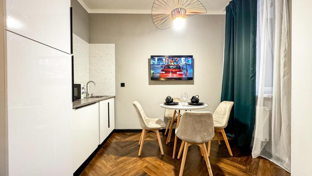 В квартире есть все необходимое, оборудованная кухня, обеденная зона, мебель и бытовая техника (холодильник, телевизор, стиральная машинка автомат, микроволновая печь, чайник, индукционная плита и, вытяжка, утюг, фен, водонагреватель и прочее), безлимитный интернет Wi-Fi и кабельное телевидение, чистые комплекты постельного белья и полотенец для всех проживающих. Предусмотрено все до мелочей. Современный красивый качественный ремонт. Очень чисто и уютно, уборка и смена постельного белья после каждого гостя.