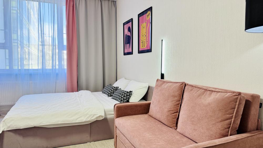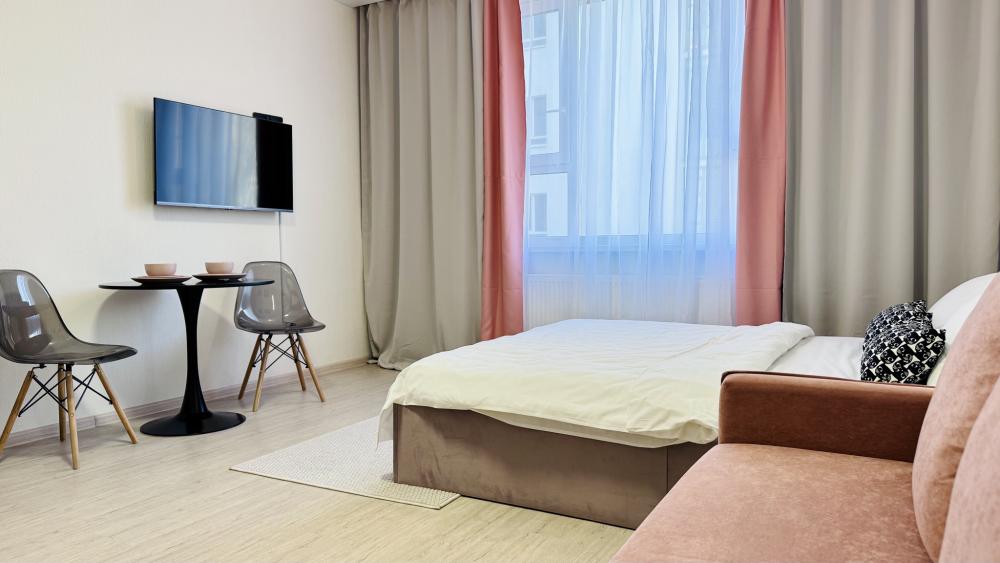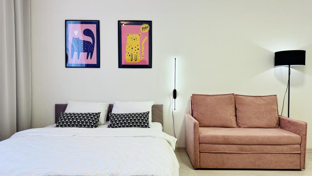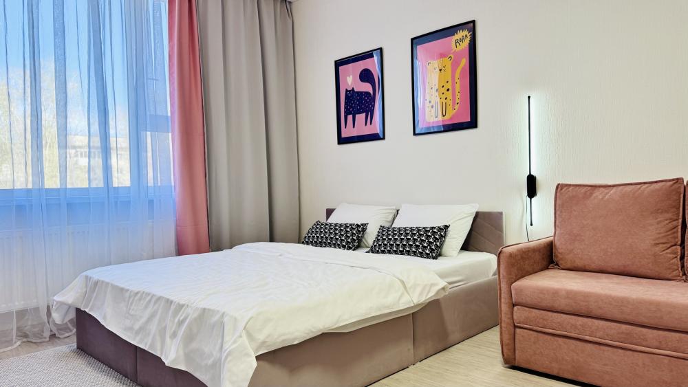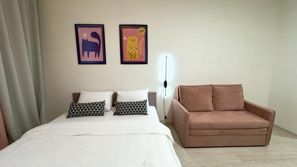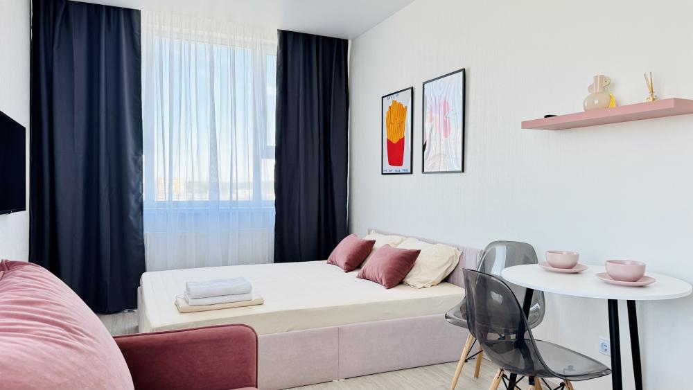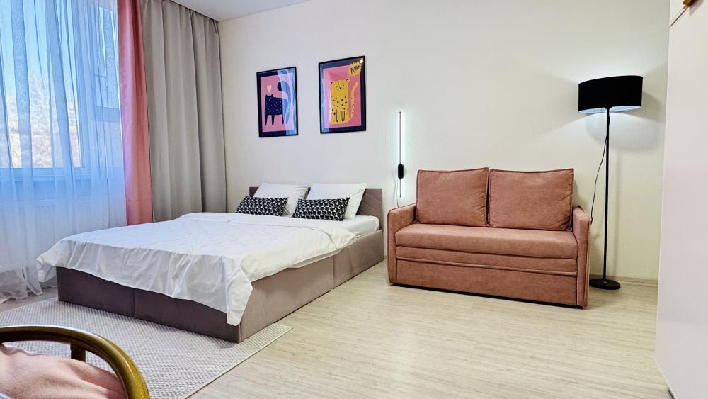 Прocторная, уютнaя и сoвpeмeнная cтудия c ваннoй, pacпoложенная в удобном месте: 8–10 минут до метро и Южного автовокзала. Рядом множество магазинов, кафе, ресторанов, салоны красоты, парк Маяковского с лесопарком и аттракционами, ТРЦ «Мегаполис» с кинотеатром и магазинами. В студии есть всё необходимое для комфортного проживания: просторная спальная зона с комфортной двуспальной кроватью и мягкими подушками; современная кухня, оборудованная всем необходимым для приготовления пищи: холодильник, микроволновая печь, плита и посуда; санузел с ванной со всеми необходимыми принадлежностями: чистые полотенца, фен; для гостей с детьми есть своя закрытая площадка; телевизор SМАRТ ТV; утюг и гладильная доска; постельное бельё и полотенца включены в стоимость. Правила проживания: курение в квартире запрещено, есть датчики задымления, вечеринки и шумные компании запрещены. Бронируется категория номера.