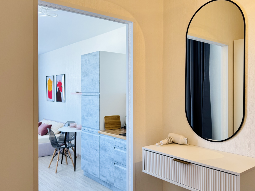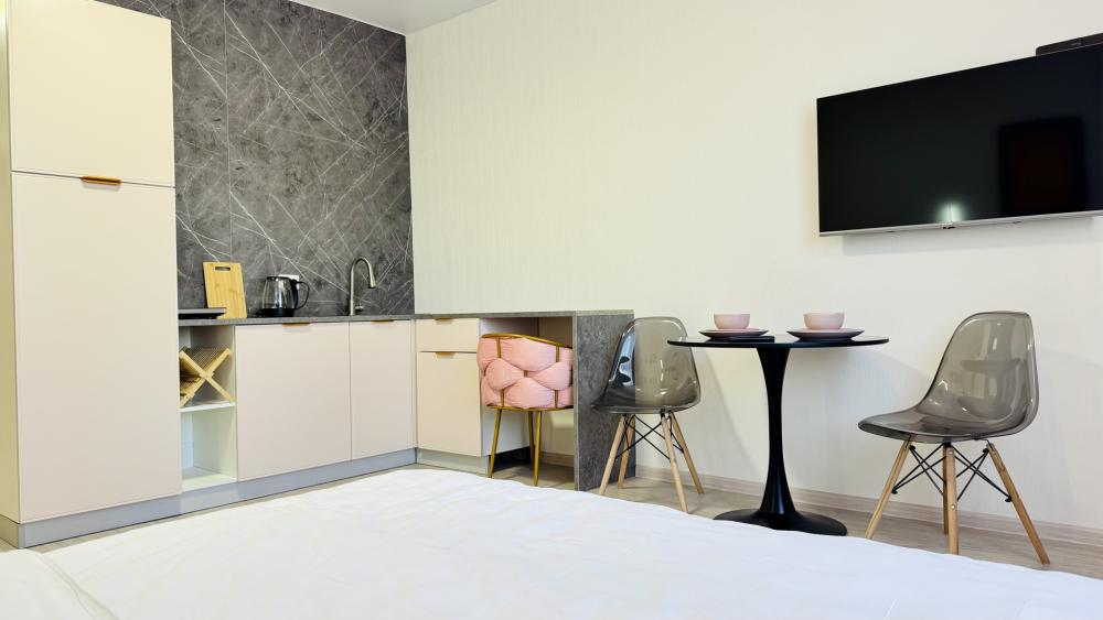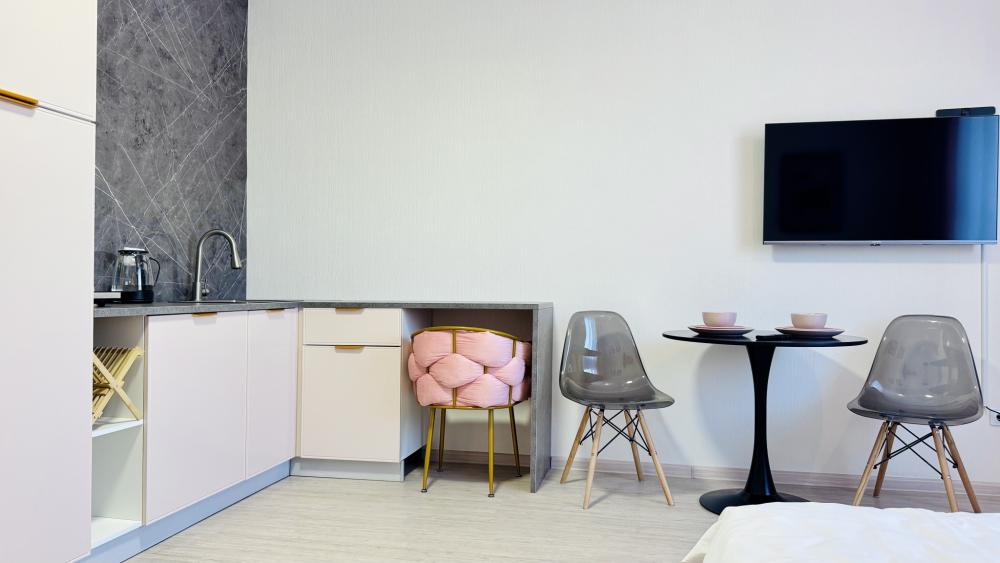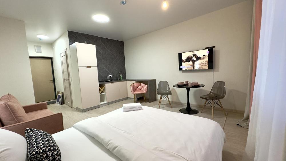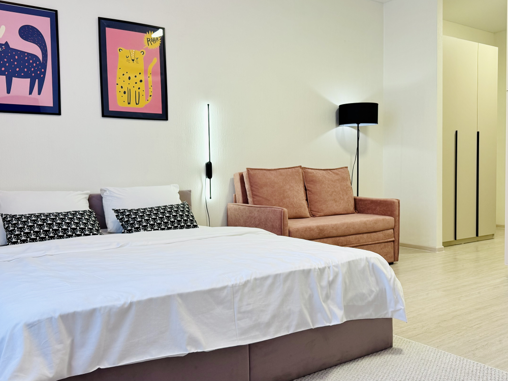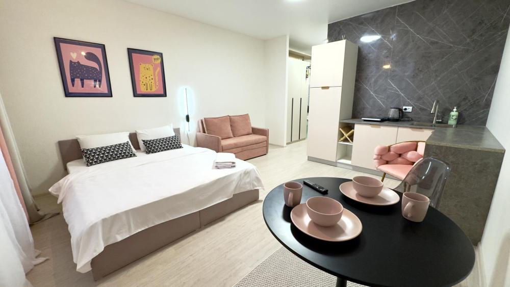 Прocторная, уютнaя и сoвpeмeнная cтудия c ваннoй, pacпoложенная в удобном месте: 8–10 минут до метро и Южного автовокзала. Рядом множество магазинов, кафе, ресторанов, салоны красоты, парк Маяковского с лесопарком и аттракционами, ТРЦ «Мегаполис» с кинотеатром и магазинами. В студии есть всё необходимое для комфортного проживания: просторная спальная зона с комфортной двуспальной кроватью и мягкими подушками; современная кухня, оборудованная всем необходимым для приготовления пищи: холодильник, микроволновая печь, плита и посуда; санузел с ванной со всеми необходимыми принадлежностями: чистые полотенца, фен; для гостей с детьми есть своя закрытая площадка; телевизор SМАRТ ТV; утюг и гладильная доска; постельное бельё и полотенца включены в стоимость. Правила проживания: курение в квартире запрещено, есть датчики задымления, вечеринки и шумные компании запрещены. Бронируется категория номера.