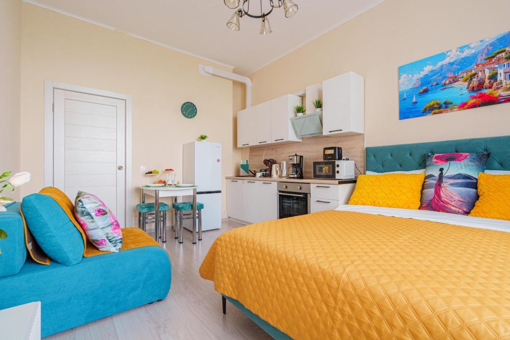 Уютные апартаменты в современном, ярком, жилом квартале рядом с огромным торговым центром "ВЕЕР МОЛЛ" на проспекте Космонавтов. Уютная квартира оборудована всей необходимой техникой и мебелью: двуспальная кровать, диван-кровать, телевизор, Смарт ТВ, бесплатный Wi-Fi, всегда качественное, свежее, чистое постельное белье, полотенца, полностью оборудованная кухня с электрической плитой, микроволновой печью, кофемашиной, холодильником, электрочайником и набором посуды, современная бытовая техника: стиральная машина, фен, утюг с гладильной доской, личные средства гигиены.