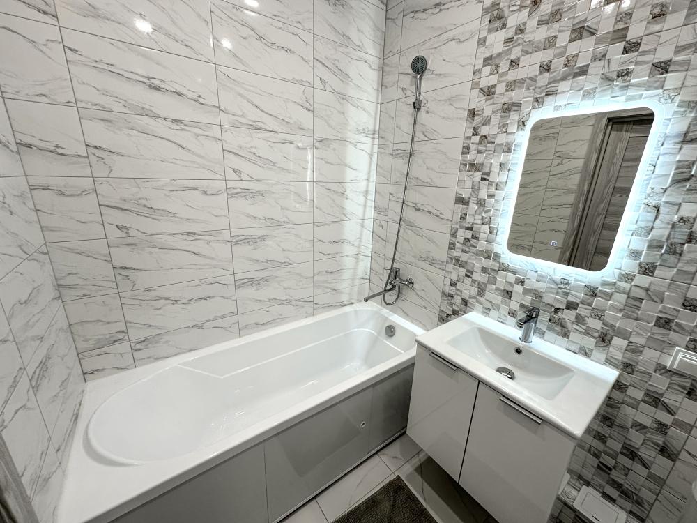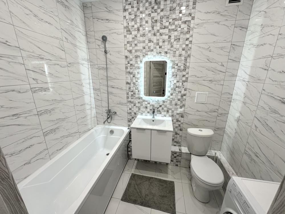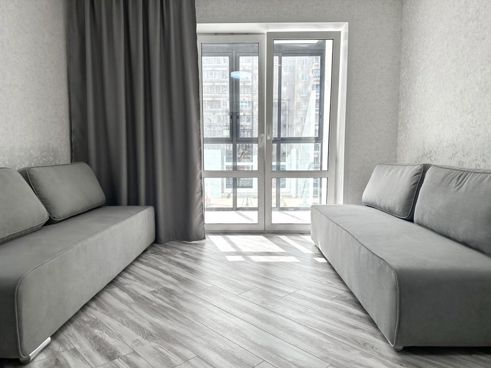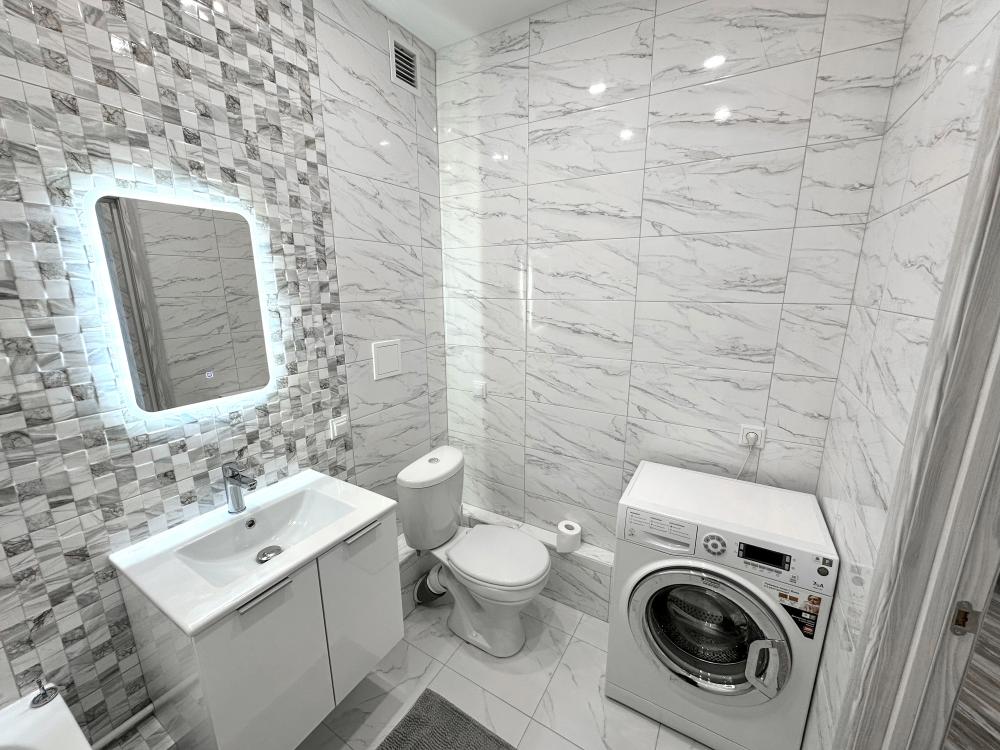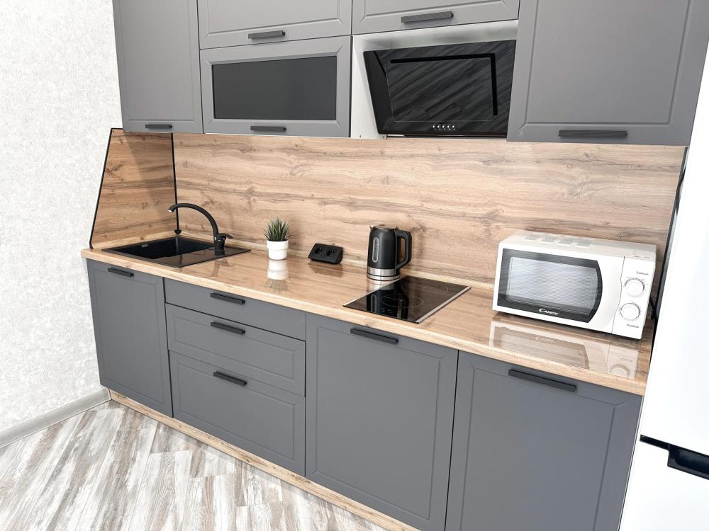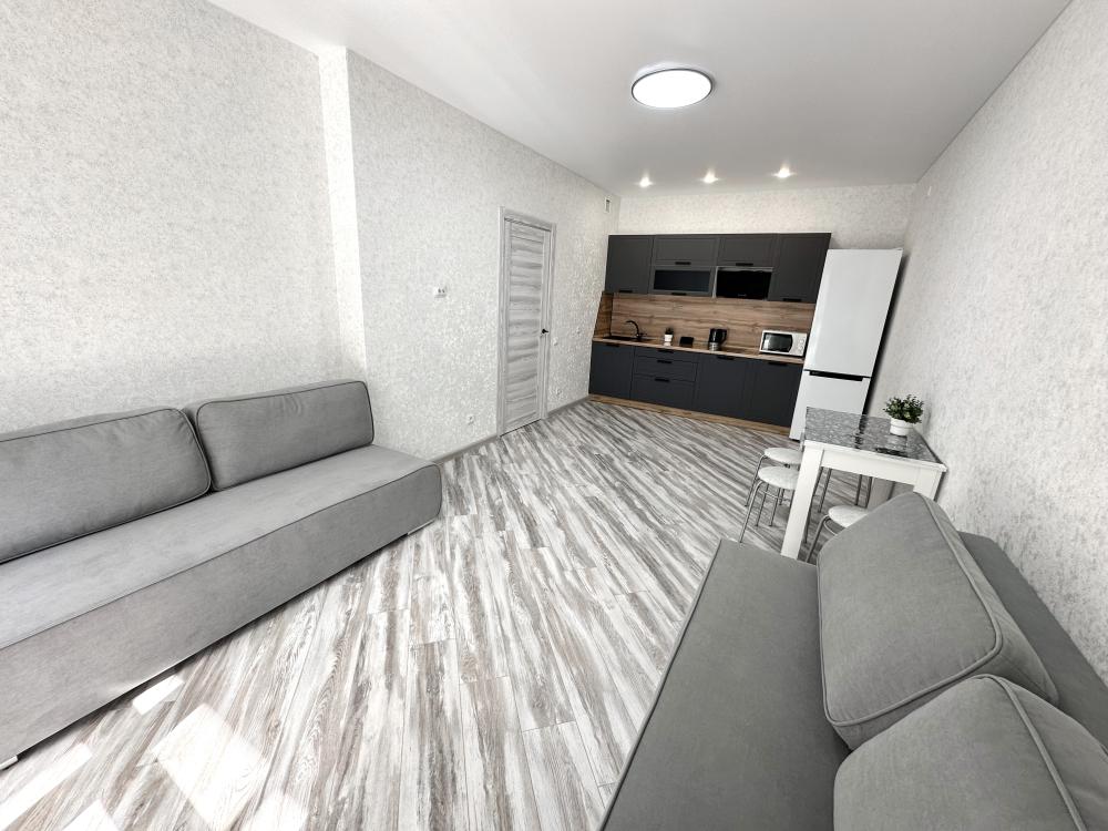 В наличии просторная кухня с микроволновкой, плитой, холодильником, а также двумя 2-х спальными диванами. В комнате кровать, телевизор, просторный шкаф-купе. Предоставляется постельное белье, полотенца, средства гигиены, WI-FI