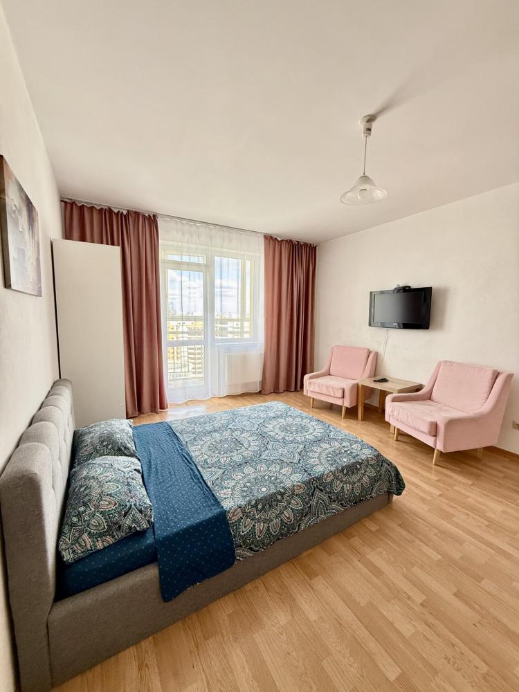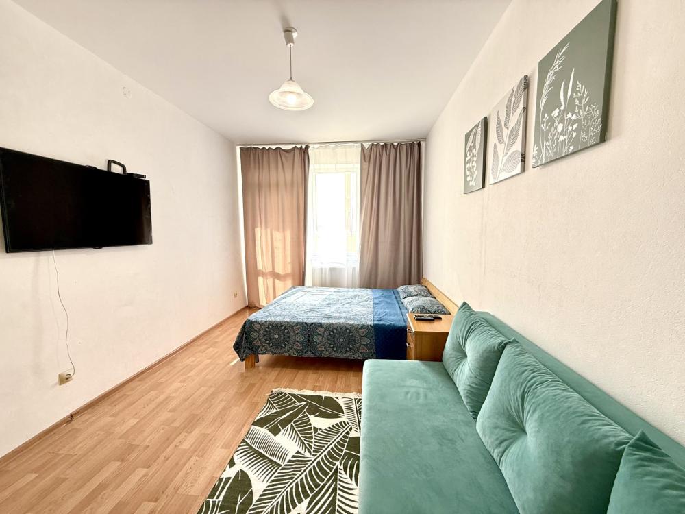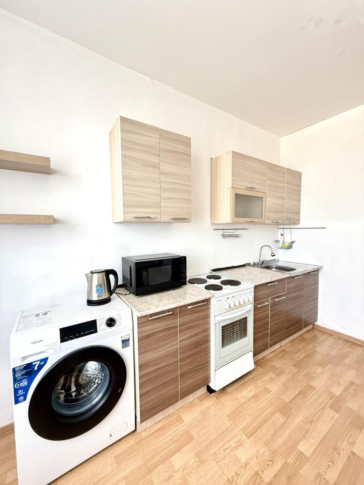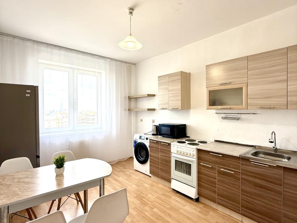 Однокомнатная квартира рядом с метро. В квартире есть все необходимое, оборудованная кухня, обеденная зона, мебель и бытовая техника: холодильник, телевизор, стиральная машинка автомат, микроволновая печь, чайник, эл. плита, утюг, фен, водонагреватель. Безлимитный интернет Wi-Fi и кабельное телевидение, чистые комплекты постельного белья и полотенец для всех проживающих.
