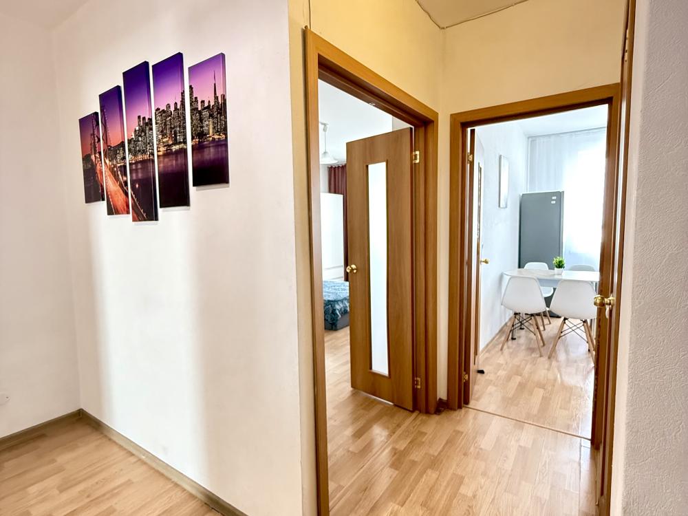 Двухкомнатная квартира рядом с метро. В квартире есть все необходимое, оборудованная кухня, обеденная зона, мебель и бытовая техника: холодильник, телевизор, стиральная машинка автомат, микроволновая печь, чайник, эл. плита. Безлимитный интернет Wi-Fi и кабельное телевидение, чистые комплекты постельного белья и полотенец для всех проживающих.
