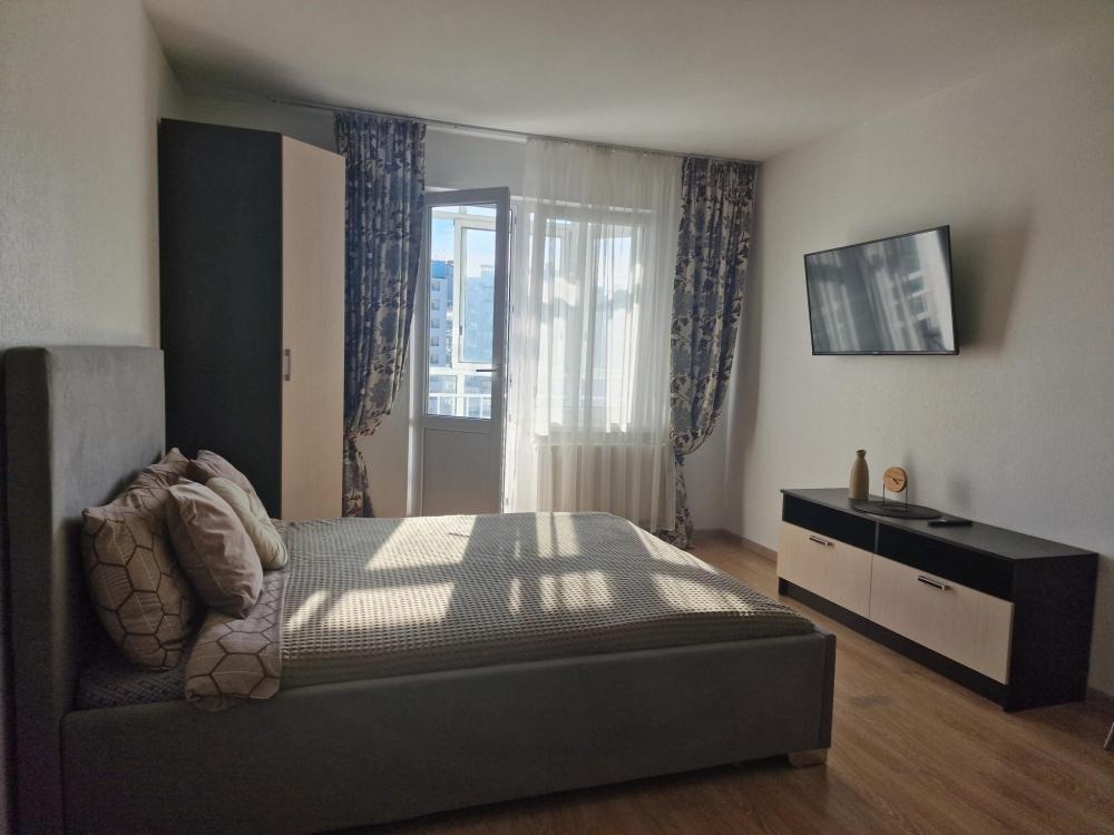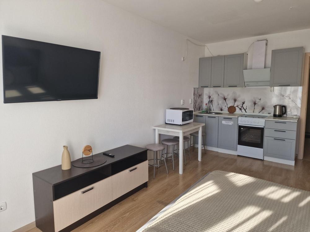 В квартире имеется все необходимое для комфортного проживания : двуспальная кровать 140*200, односпальная кровать 90*200, постельное белье и полотенца, набор новой посуды и столовых приборов на 6 персон. Есть просторная лоджия с панорамными окнами. Мультимедиа: Wi-Fi, телевизор , цифровое ТВ-140 каналов. Бытовая техника: электроплита, микроволновка, холодильник, стиральная машина – автомат и сушилка для белья и одежды, утюг и гладильная доска