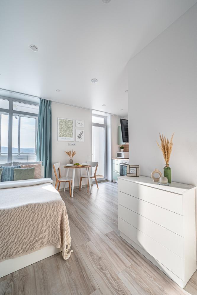 Cтильнaя и cоврeменнaя студия с новой мебелью и дизaйнеpcким ремонтом! Забронируйте прямо сейчас! Метро ботаническая - 5 минут на авто Аэропорт кольцово - 15 минут на авто В квартире есть все необходимое для проживания 4-х человек: - Ортопедическая двуспальная кровать; - Двуспальный диван; - Вместительный шкаф; - Wi-fi, smart tv; - Гладильная доска, утюг, сушилка; - белоснежное постельное белье, комплект мягких пушистых полотенец. Кухня: - Электрическая плита, микроволновка, духовка, чайник, холодильник; - набор новой посуды в едином стиле и все необходимые принадлежности для приготовления пищи; - Чай/сахар, растительное масло. Ванная комната: - Ванна, стиральная машина, фен; - Шампунь, гель для душа, мыло в дозаторах, стиральный порошок.. Правила проживания: - Заезд после 14: 00; - Выезд до 12: 00; - Заезд после 23: 00 по предварительному согласованию и оплате 100%; - Оплата вносится 100% в течении 10 минут после заселения; - Заселение бесконтактное 24/7; - От 25 лет при наличии паспорта; - заселение в возрасте от 20 до 25 лет по согласованию с менеджером, иногородние, не более 2 человек, со страховым депозитом 5000 руб; - проживание с детьми разрешено. Заселение в возрасте до 18 лет только при проживании с родителями с документальным подтверждением родства; проживание с животными запрещено; - курение и шумные мероприятия в квартире не допускаются; - отчетные документы предоставляем; - ранний заезд и поздний выезд возможны по согласованию и при наличии свободных мест. - в квартире запрещается проживание гостей не указанных в заявке на бронирование без согласования менеджером. Дополнительные гости, находящиеся в квартире более 1 часа оплачиваются по тарифу 300 руб./чел. Страховой депозит с гостей за сохранность имущества в размере 3000 руб. Исключения: гости до 25 лет (берём залог в размере 5000 рублей) Страховой депозит, возвращается после уборки в день выезда, при отсутствии ущерба и соблюдения всех правил проживания. Уважаемые гости, бронируя квартиру и внося предоплату за бронирование означает что Вы согласны с правилами проживания. Забронируйте прямо сейчас! Ждем наших дорогих гостей!