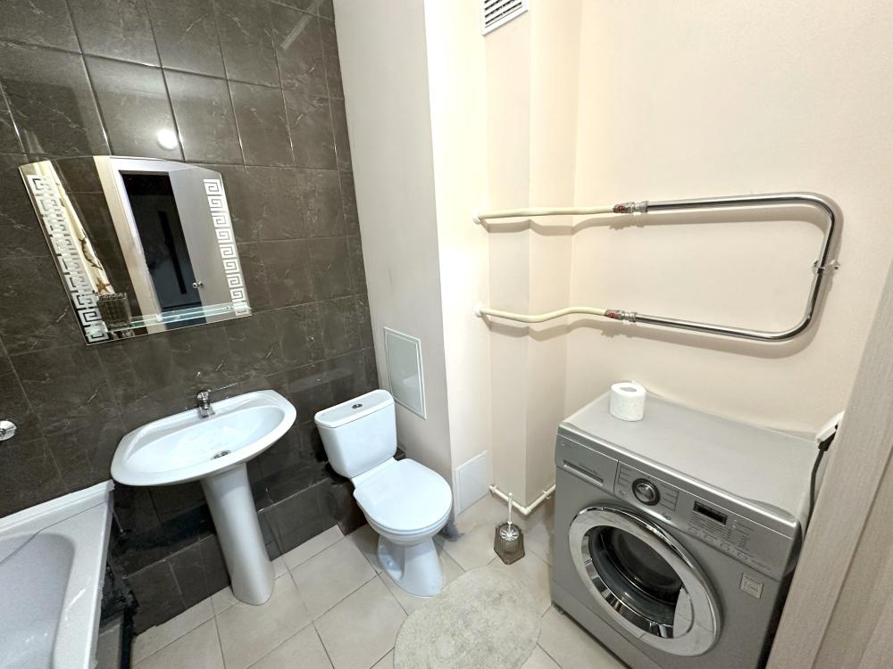 В ванной комнате стиральная машина, ванна, с/у совмещенный.