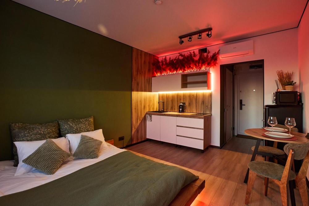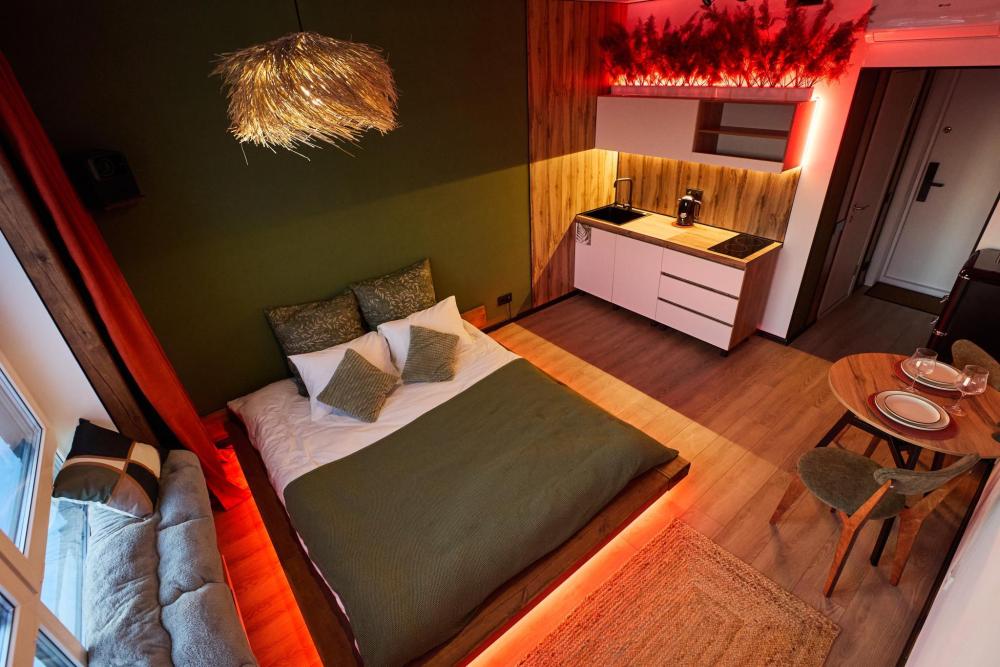 Эта студия создана для романтических свиданий, особенных вечеров и отдыха вдвоём — когда хочется тишины, уединения и ощущения, будто весь город остался где-то далеко.