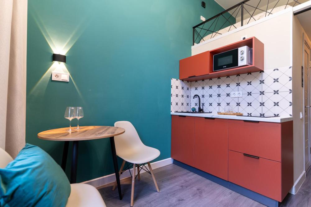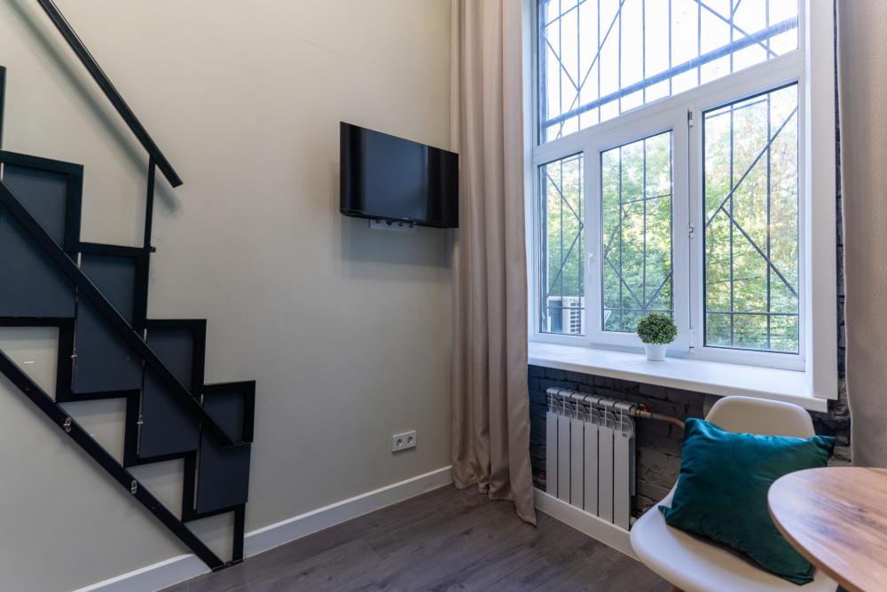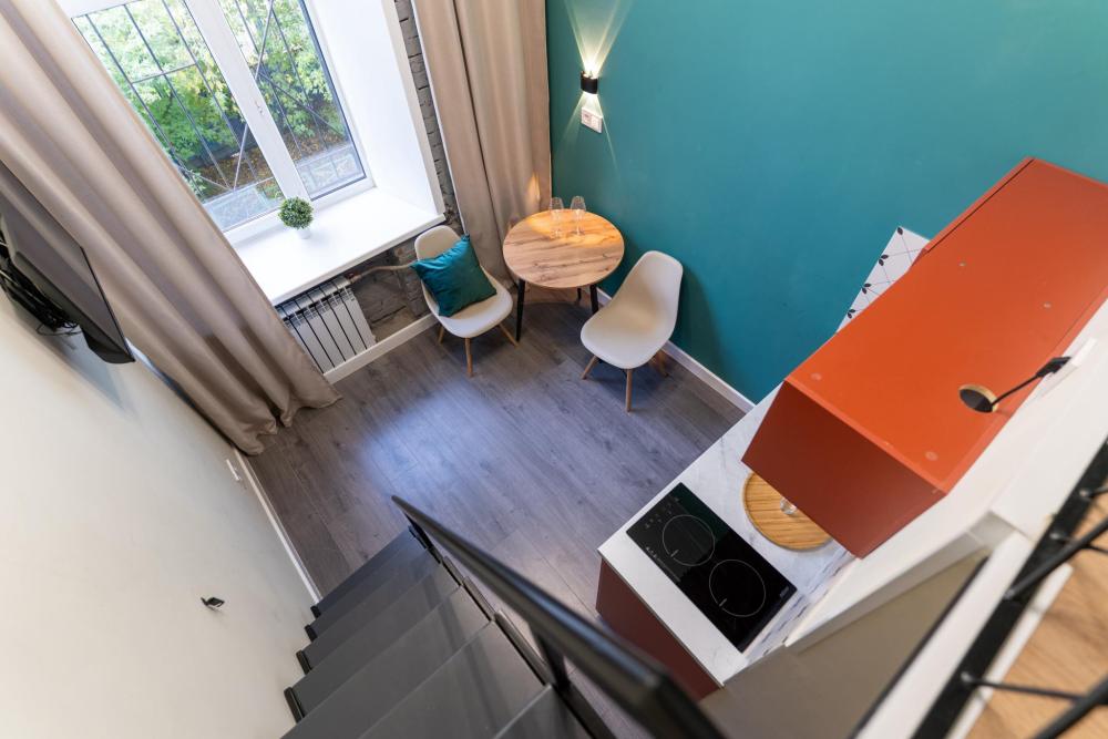 Современная двухярусная студия. Стильный ремонт с яркими акцентами, новая мебель и техника. Отделённая спальная зона на верхнем ярусе. Удобное расположение у центра города со всей необходимой транспортной развязкой. Апартамент предназначен для размещения 4 гостей. В апартаментах спальные места: 1 двуспальная кровать, 1 двуспальный диван, Wi-fi, телевизор со смарт-ТВ, бойлер, кровать уже заправлена чистым и выглаженным постельным бельём, кухонная зона оборудована всей необходимой бытовой техникой и посудой, чай, сахар, индивидуальные ванные принадлежности для каждого гостя, фен, утюг, стиральная машина.
