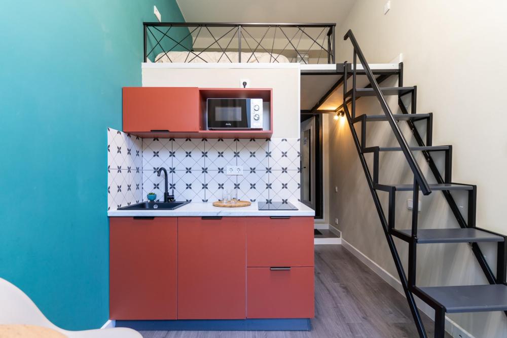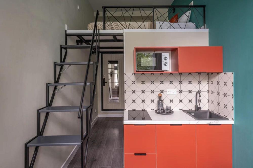 С удовольствием представляем вам современную двухярусную студию. Стильный ремонт с яркими акцентами, новая мебель и техника. Отделённая спальная зона на верхнем ярусе. Есть выход на балкон. Удобное расположение у центра города со всей необходимой транспортной развязкой. Апартамент предназначен для размещения 4 гостей. ✅ Мы подготовили все для вашего комфортного пребывания: - Спальные места: 1 двуспальная кровать, 1 двуспальный диван - Wi-fi - Телевизор со смарт-ТВ - Бойлер - Кондиционер - Кровать уже заправлена чистым и выглаженным постельным бельём. - Кухонная зона оборудована всей необходимой бытовой техникой и посудой. - Чай, сахар. - Индивидуальные ванные принадлежности для каждого гостя. - Фен, утюг, стиральная машина.