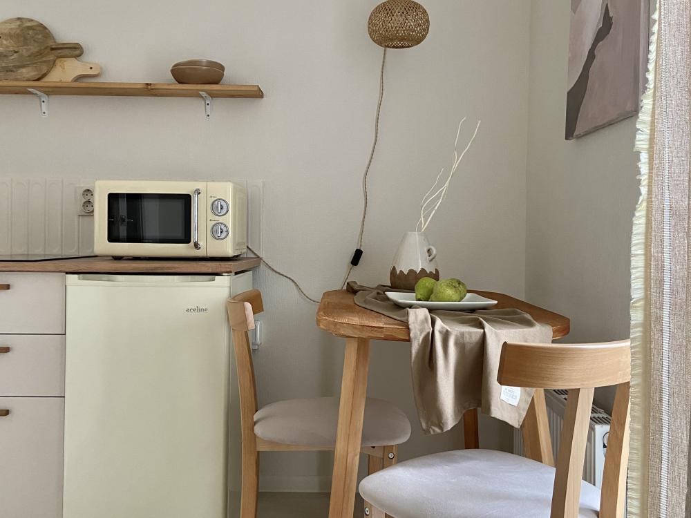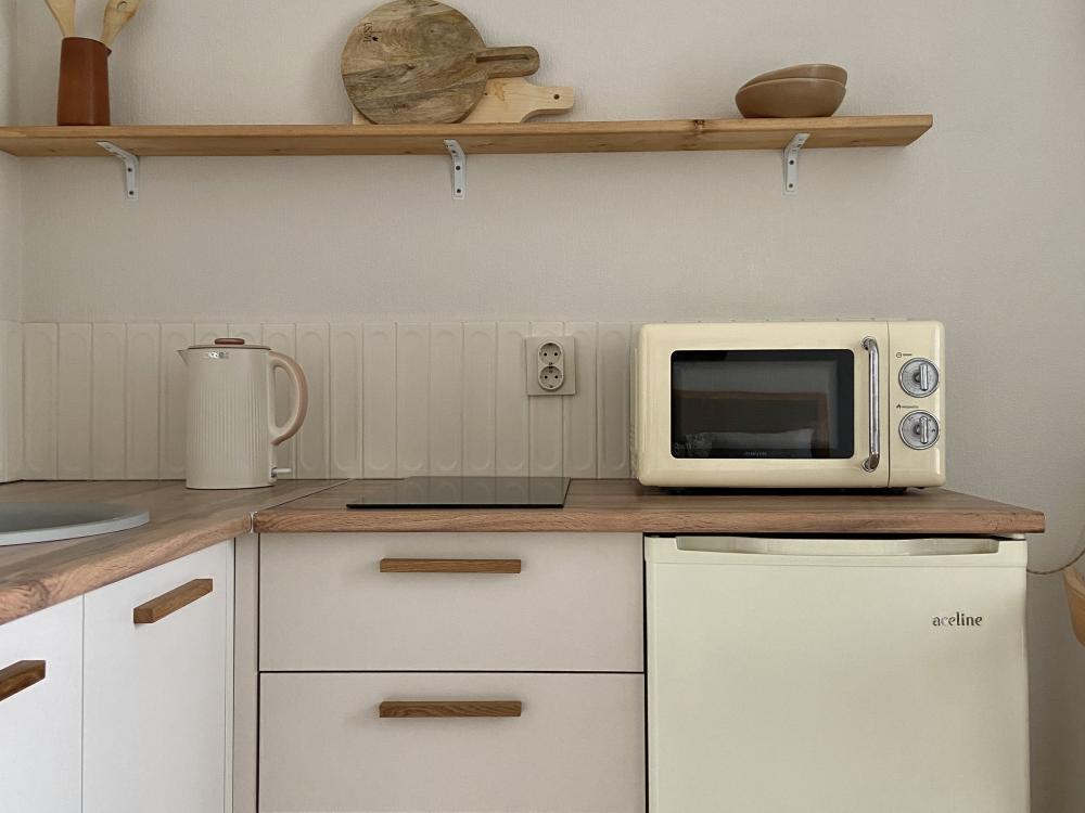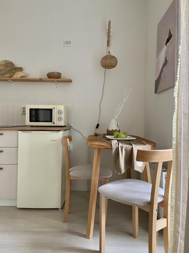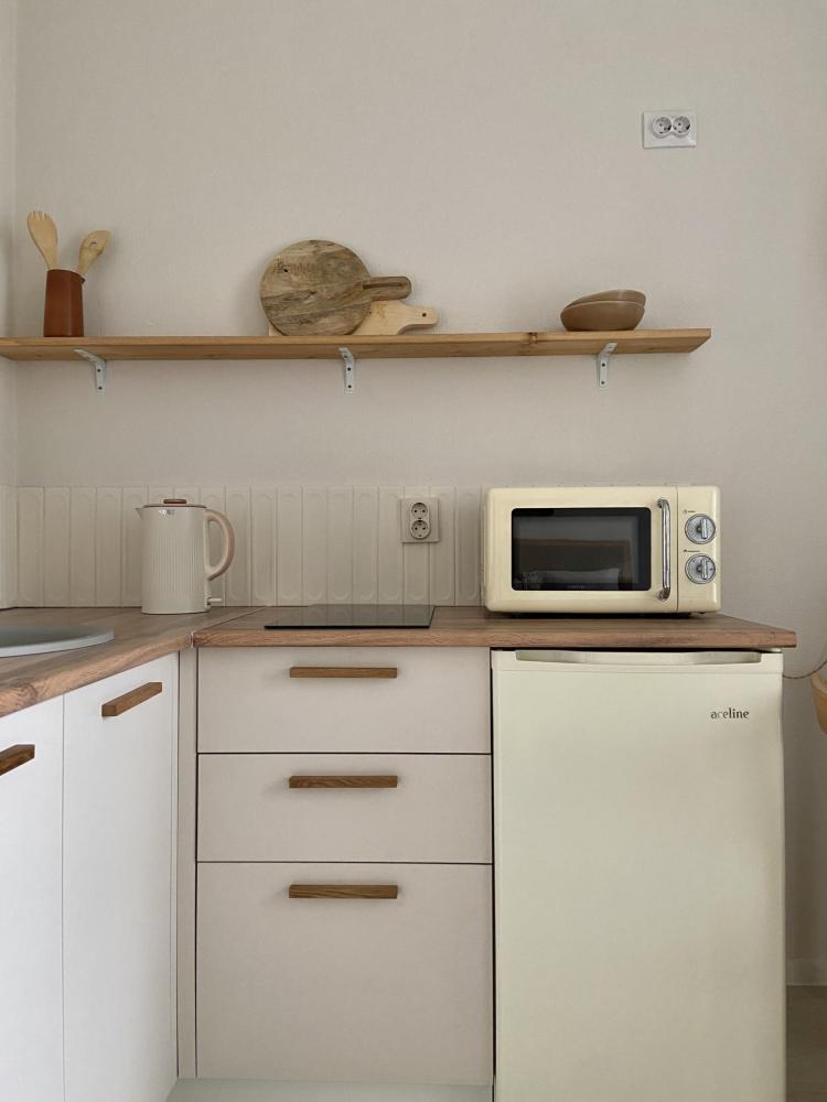 В вашем распоряжении вся необходимая техника: плита, холодильник, микроволновка, стиральная машина, электрочайник, утюг и гладильная доска.