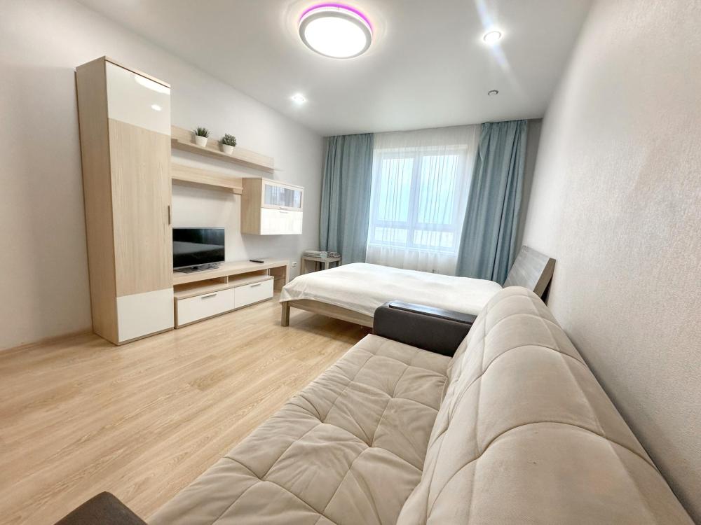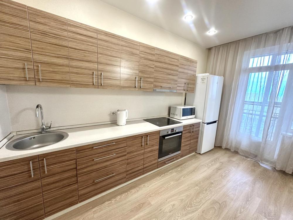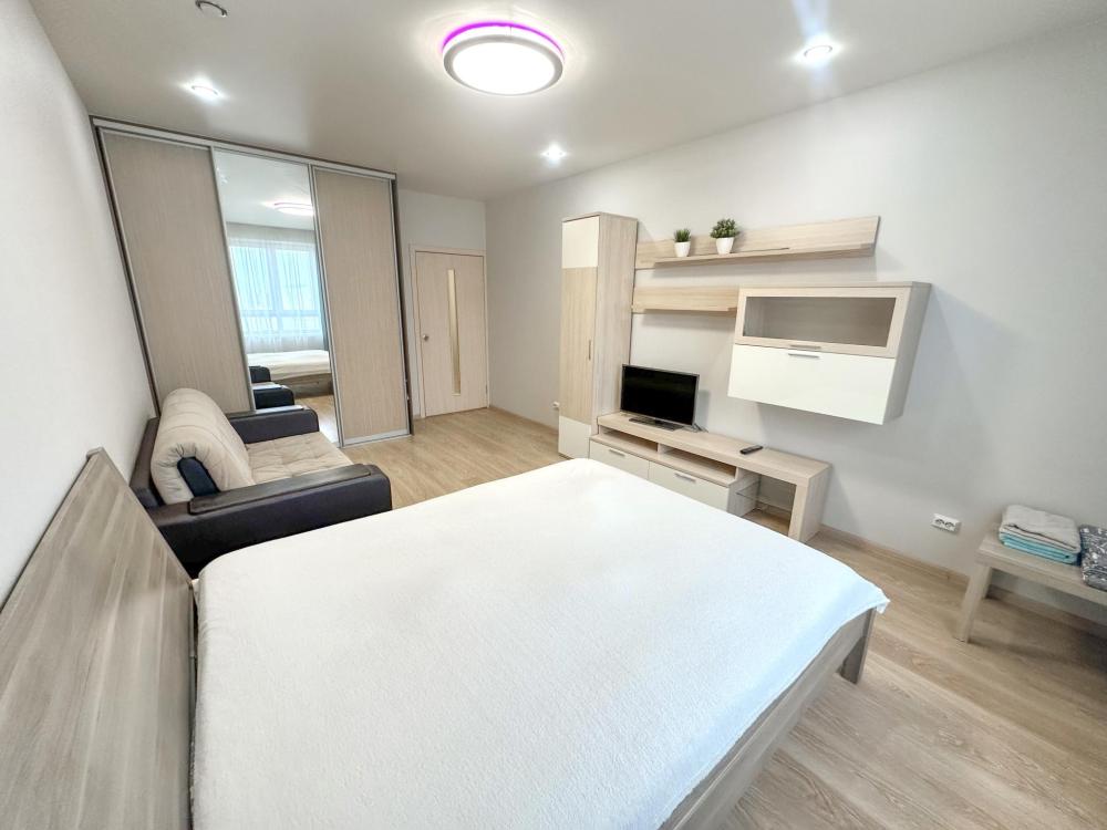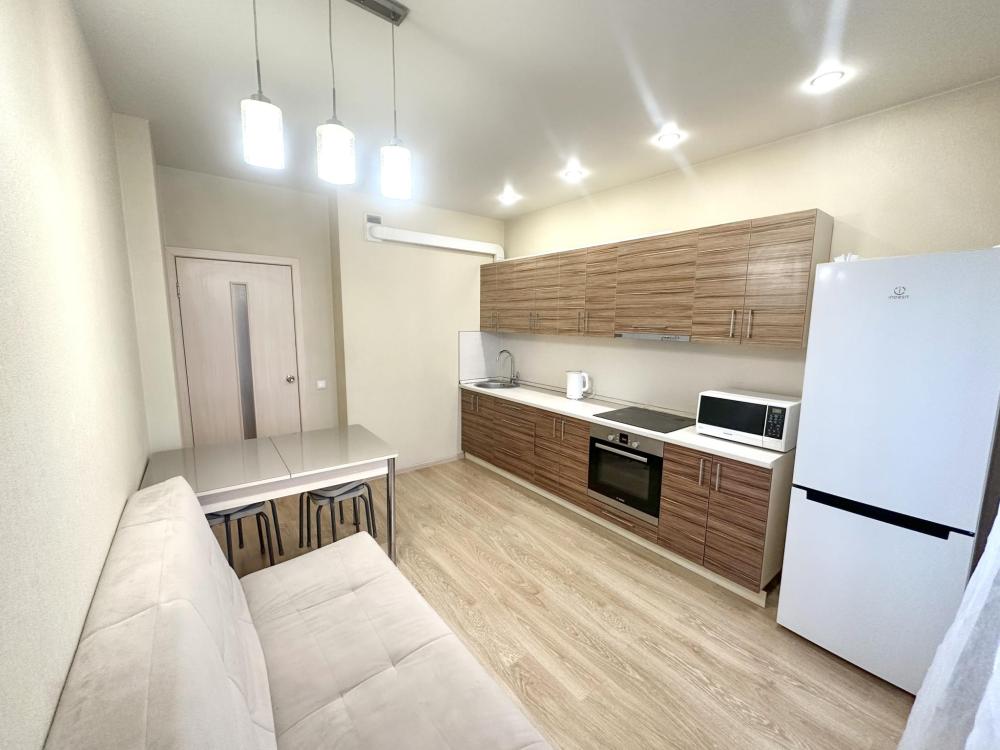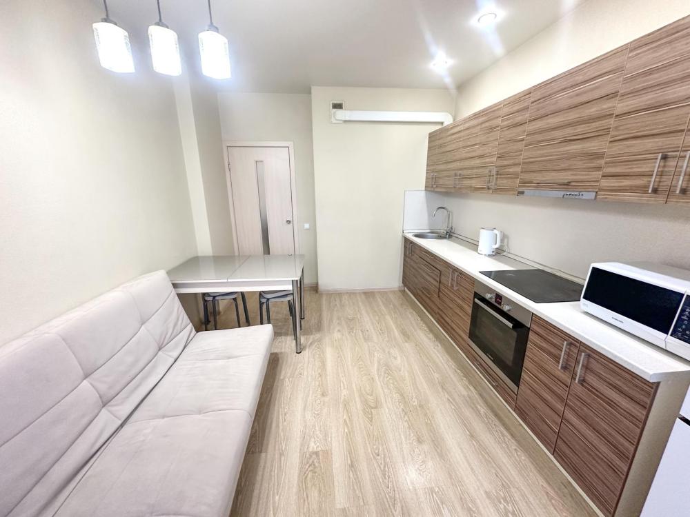 В наличии просторная кухня, где есть: кухонный гарнитур, мягкая мебель, варочная поверхность, духовой шкаф, чайник, посуда. Комната с большой кроватью, диваном, телевизором с wi-fi. Предоставляется постельное бельё, полотенца.