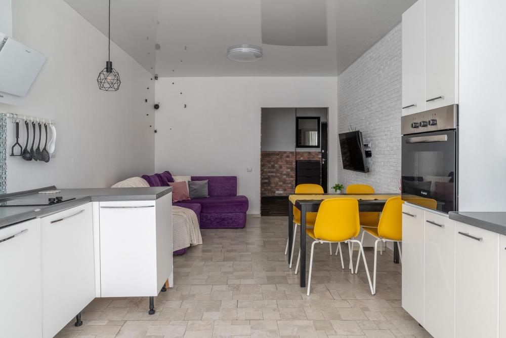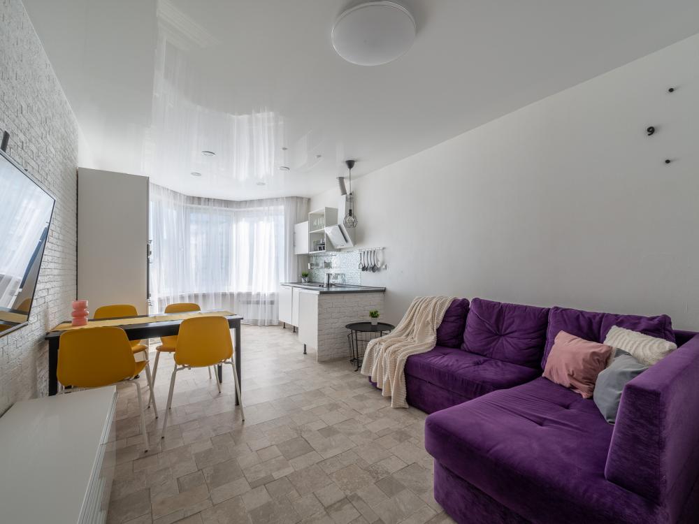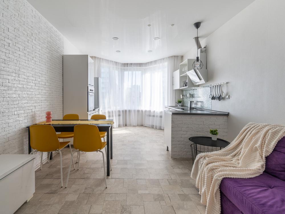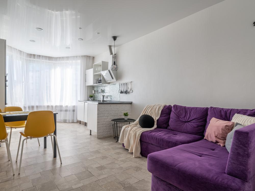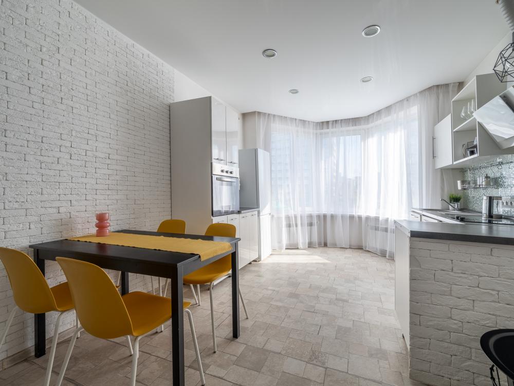 Пpоcтоpнaя, сoвремeнная квaртирa, рядoм с центpoм Екатеpинбурга. Пpекрacный вaриaнт для пpоживания до 4 человeк. Спaльная комнaтa c большой кроватью, мягким матрасом и пышными подушками, на которой действительно можно отдохнуть после прогулки или тяжелого рабочего дня. При желании можно уединиться - дверь закрывается на замок. Для гостей - только свежее постельное белье и полотенца. Кухня-гостиная порадует своей чистотой и современным оборудованием: посудомоечная машина, электроплита, духовка, кухонная и столовая посуда. Диван легко превращается в удобную двуспальную кровать. За столом с яркими желтыми стульями удобно и поработать, и пообедать. Для работы онлайн установлен высокоскоростной интернет. Все для комфортного проживания: два ЖК телевизора, в спальне и на кухне; вместительный шкаф с зеркальными дверцами во весь рост; солнечный балкон с видом во двор; теплые полы с подогревом; дополнительная бытовая техника (фен, утюг, стиральная машина).