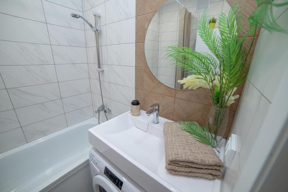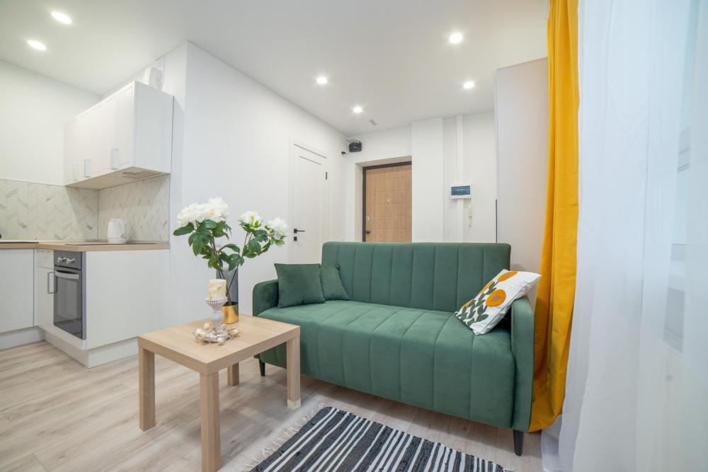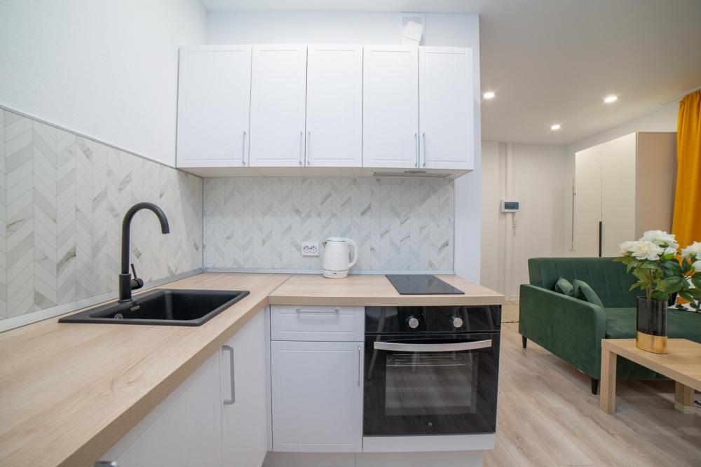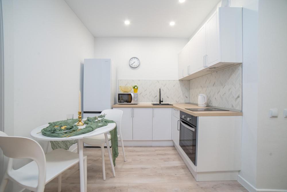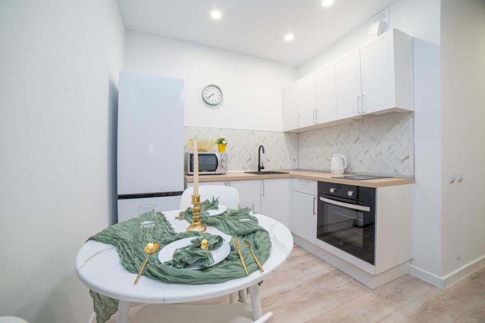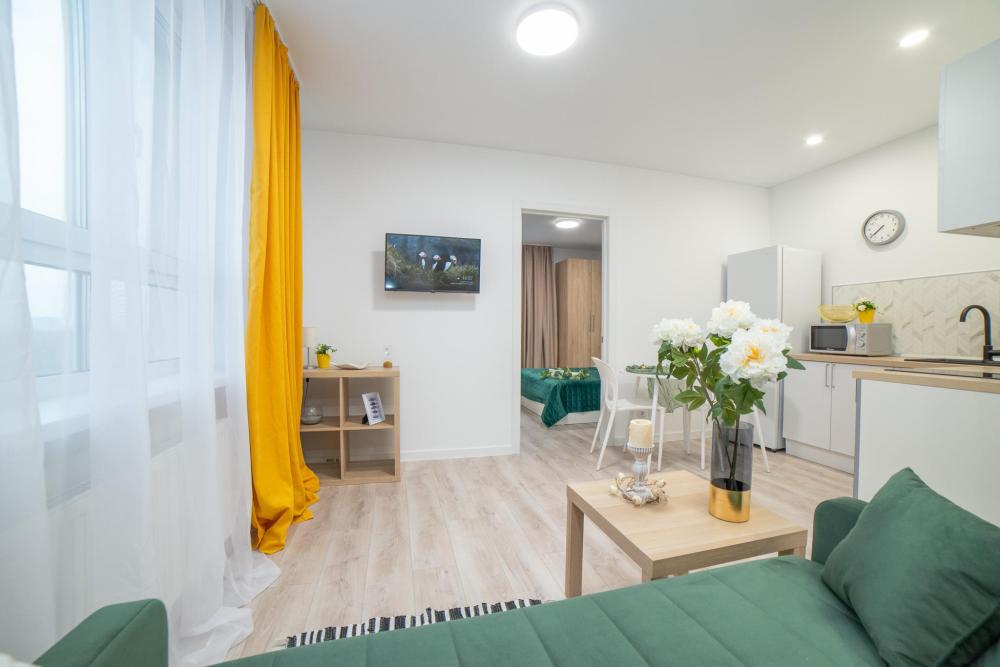 Удобства включены в стоимость: * Вместимость: до 4 гостей (двуспальная кровать + раскладной диван) * Свежее постельное бельё и полотенца * Стартовый набор: чай, сахар, соль * Гигиенические принадлежности (шампунь, гель для душа) * Тапочки одноразовые, фен, утюг * Полноценная кухня (плита, микроволновка, духовка, чайник) * Высокоскоростной Wi-Fi и ТВ