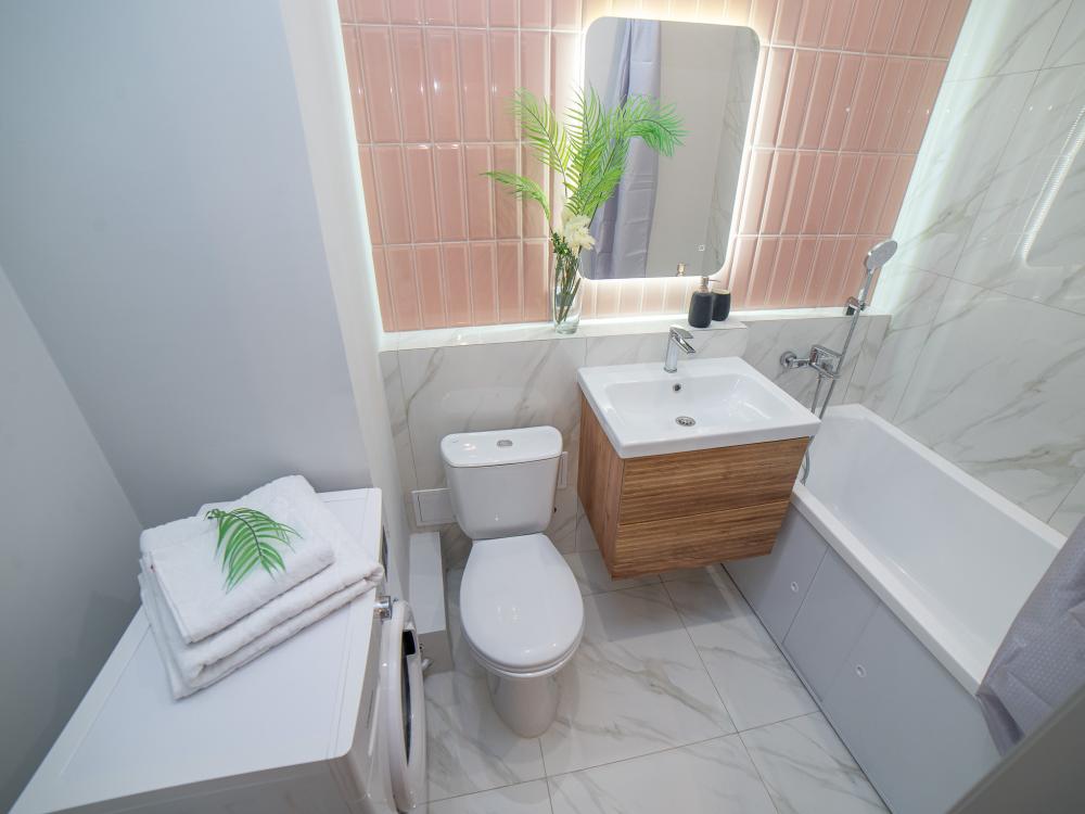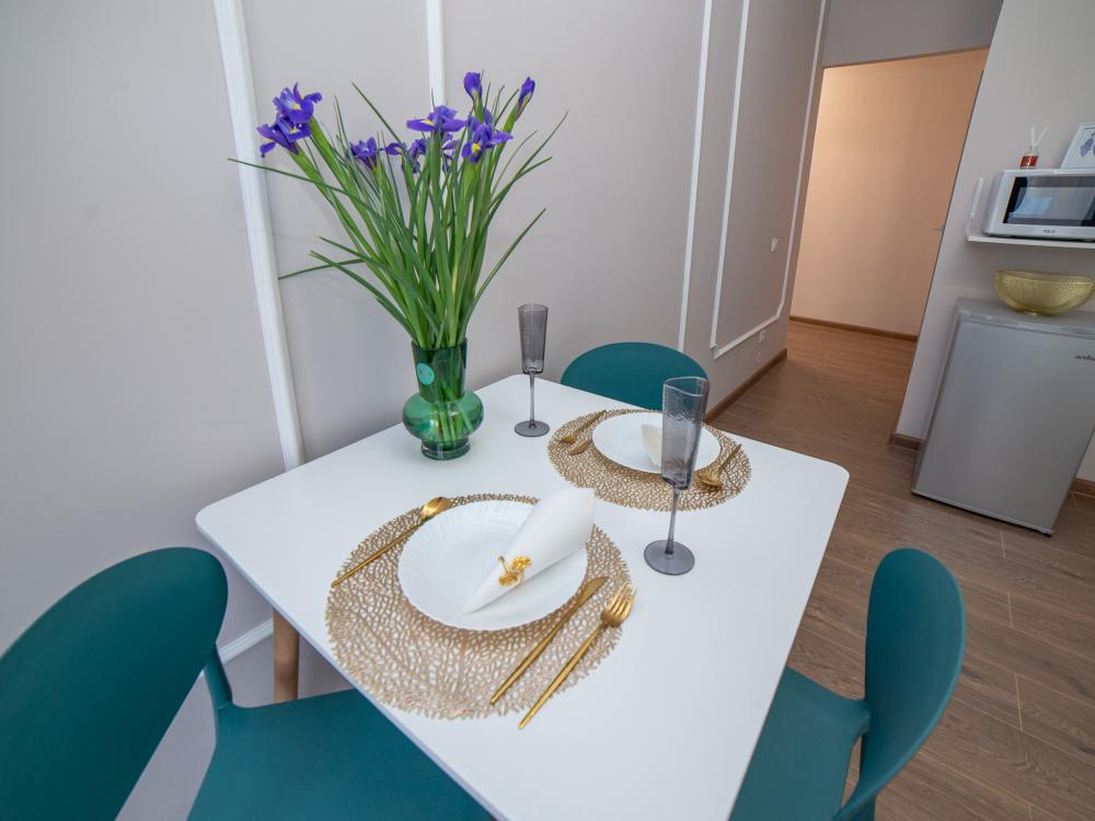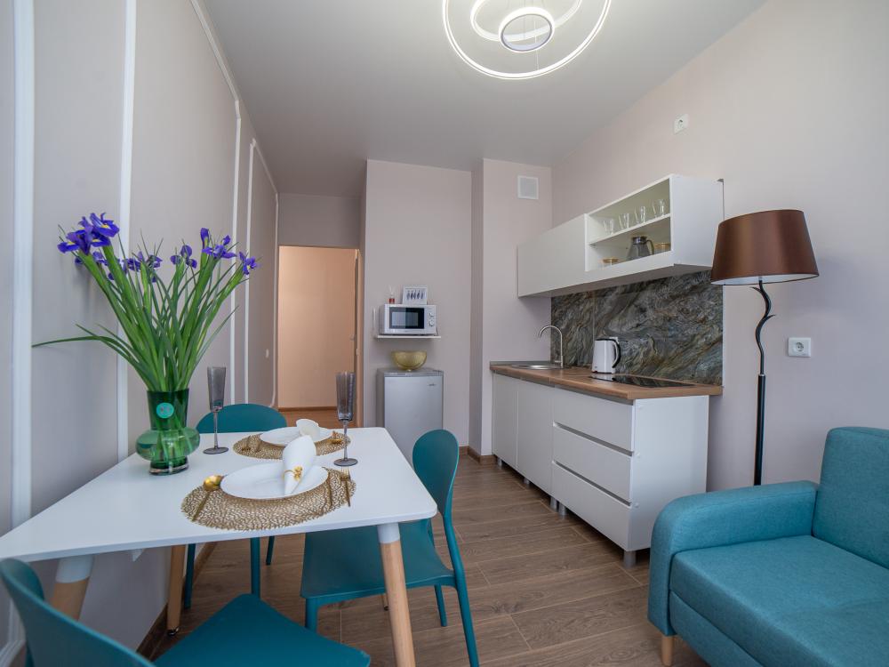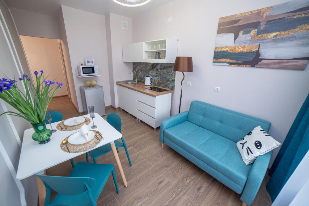 Удобства включены в стоимость: * Вместимость: до 4 гостей (двуспальная кровать + раскладной диван) * Свежее постельное бельё и полотенца * Стартовый набор: чай, сахар, соль * Гигиенические принадлежности (шампунь, гель для душа) * Тапочки одноразовые, фен, утюг * Полноценная кухня (плита, духовка, микроволновка, чайник) * Высокоскоростной Wi-Fi и ТВ * Лоджия
