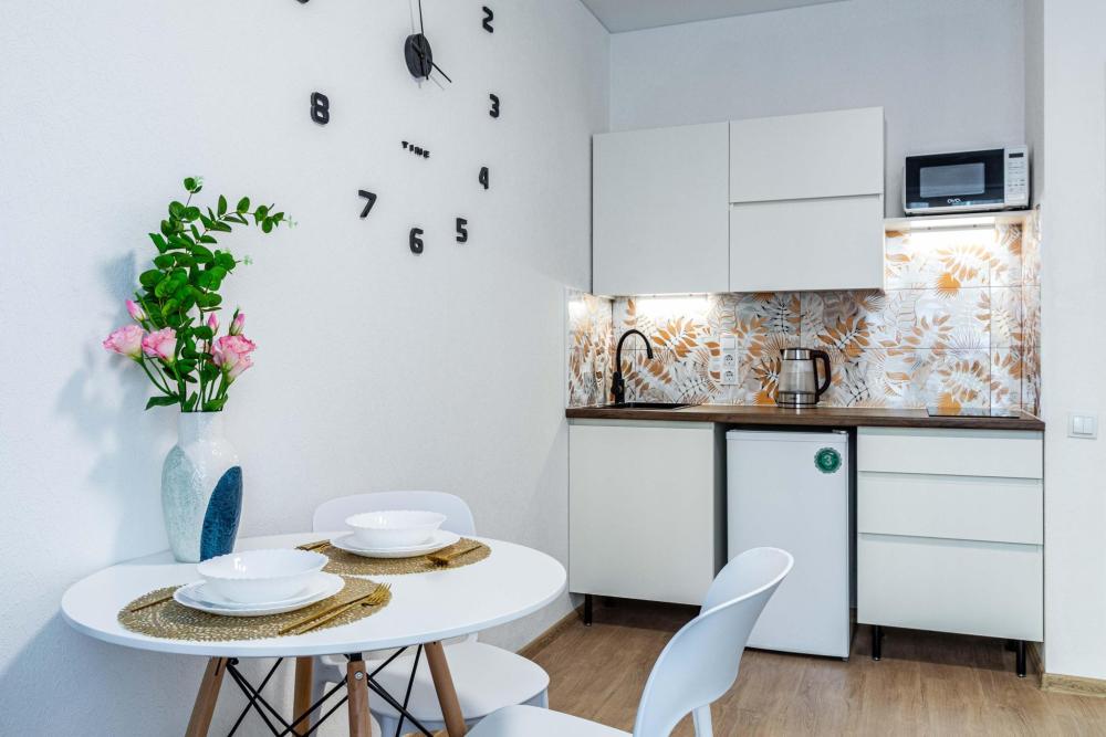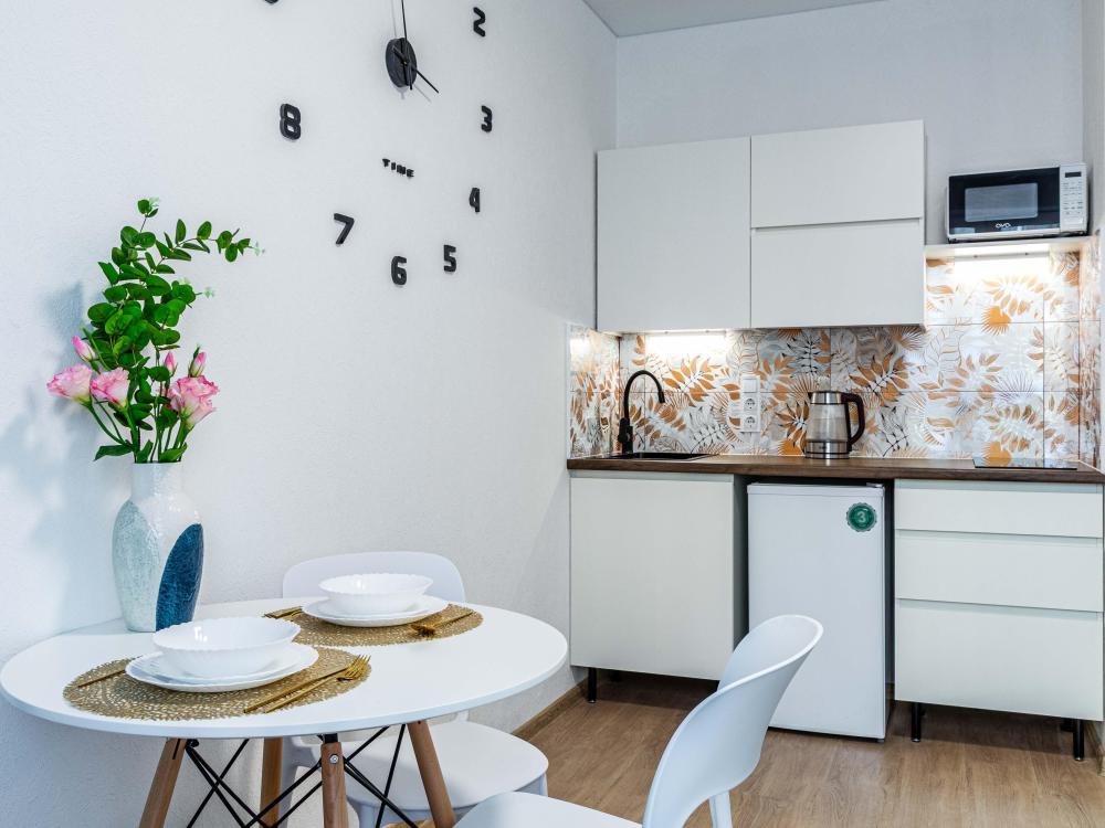 Удобства включены в стоимость: * Вместимость: до 6 гостей (двуспальная кровать + 2 раскладных дивана) * Свежее постельное бельё и полотенца * Стартовый набор: чай, сахар, соль * Гигиенические принадлежности (шампунь, гель для душа) * Тапочки одноразовые, фен, утюг * Полноценная кухня (варочная панель, микроволновка, чайник) * Высокоскоростной Wi-Fi и ТВ
