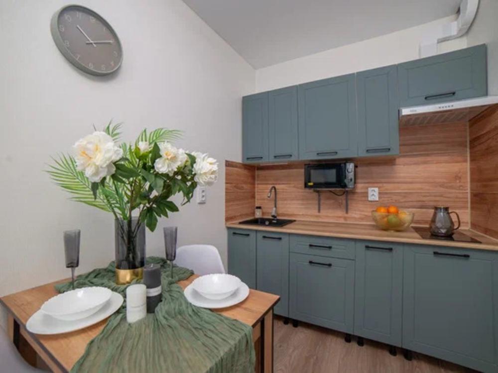 Удобства включены в стоимость: * Вместимость: до 4 гостей (двуспальная кровать и раскладной диван) * Свежее постельное бельё и полотенца * Стартовый набор: чай, сахар, соль * Гигиенические принадлежности (шампунь, гель для душа) * Тапочки одноразовые, фен, утюг * Полноценная кухня (варочная панель, микроволновка, чайник) * Высокоскоростной Wi-Fi и ТВ