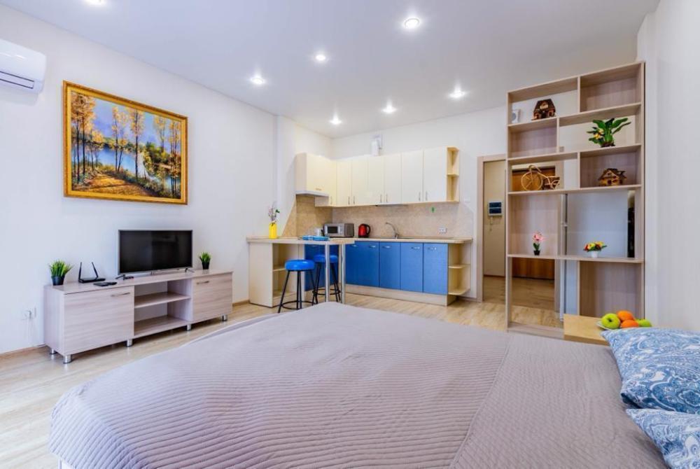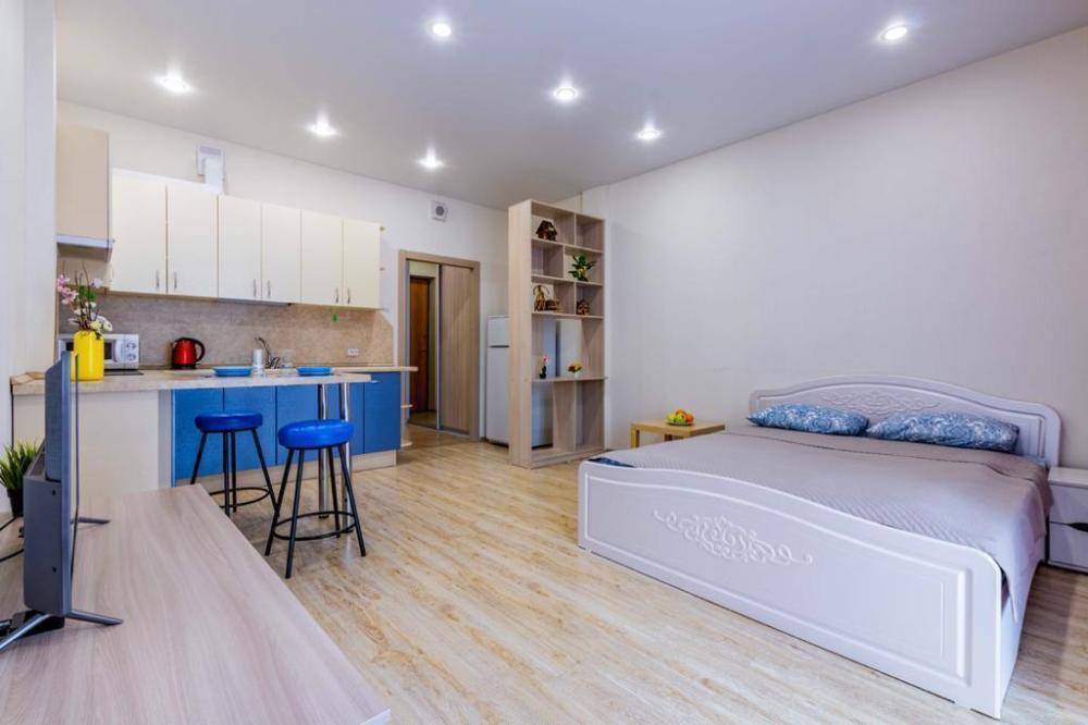 Великолепная квартира-студия порадует гостей современным ремонтом и стильной планировкой. Студия расположена в центре города, где инфраструктура развита на самом высоком уровне. В пешей доступности находится Бизнес-центр «Высоцкий», большое количество кафе и ресторанов на любой вкус. Вблизи также есть аптеки, различные магазины и развлекательные заведения. Данная студия рассчитана для одного или двоих человек. Оснащение квартиры: * Роскошная двуспальная кровать с ортопедическим матрасом, заправленная чистым бельем. * Обеденный стол со стульями и вся необходимая бытовая техника, посуда и столовые приборы. * Для каждого гостя комплект чистых полотенец. * ЖК телевизор с TV приставкой. * Бесплатный высокоскоростной интернет. * Фен, утюг, сушилка, гладильная доска. ЗАПРЕЩЕНО: проживание с животными, курение табачных изделий (вейпов, электронных сигарет, IQOS, кальянов и т.д.), проведение шумных мероприятий, вечеринок и др.