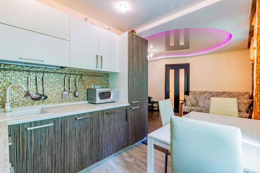 Двухкомнатная квартира-студия расположена в самом сердце Железнодорожного района города Екатеринбурга. Развитая инфраструктура: в доме находится Сбербанк, кафе доставка еды «Пироги», магазин «Красное и белое». Удобная транспортная развязка – трамваи, станции метро «Динамо», «Уральская». В шаговой доступности Ортопедическое предприятие, Храм на крови, Окружной дом офицеров, Харитоновский сад, Вознесенская церковь. Квартира с качественным ремонтом, в которой могут комфортно расположиться семья или компания из 8-ми человек. Оснащение квартиры: * Две роскошные двуспальные кровати с ортопедическим матрасом, заправленные чистым бельем. * Два удобных дивана, которые можно использовать как дополнительное место. * Обеденный стол со стульями и вся необходимая бытовая техника, посуда и столовые приборы. * Для каждого гостя комплект чистых полотенец. * ЖК телевизор с TV приставкой. * Бесплатный высокоскоростной интернет. * Фен, утюг, сушилка, гладильная доска. ЗАПРЕЩЕНО: проживание с животными, курение табачных изделий (вейпов, электронных сигарет, IQOS, кальянов и т.д.), проведение шумных мероприятий, вечеринок и др.