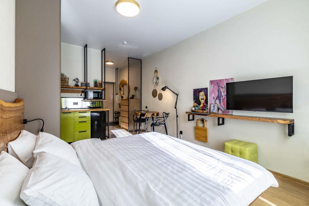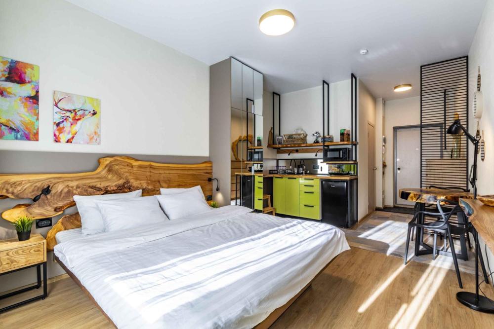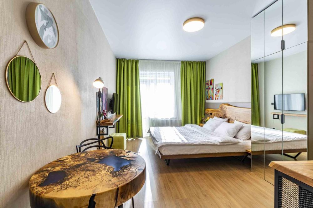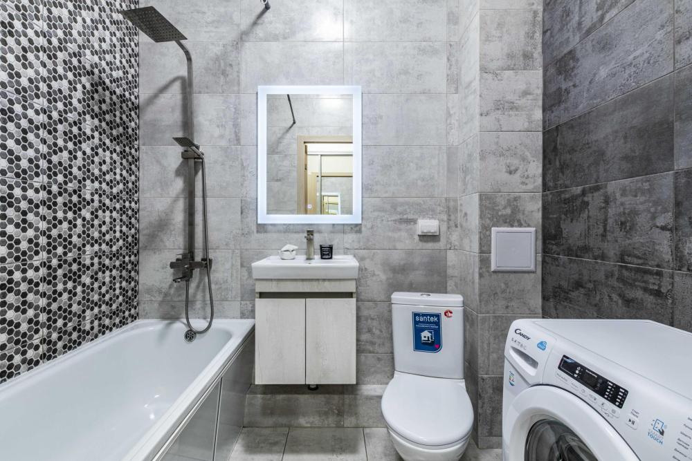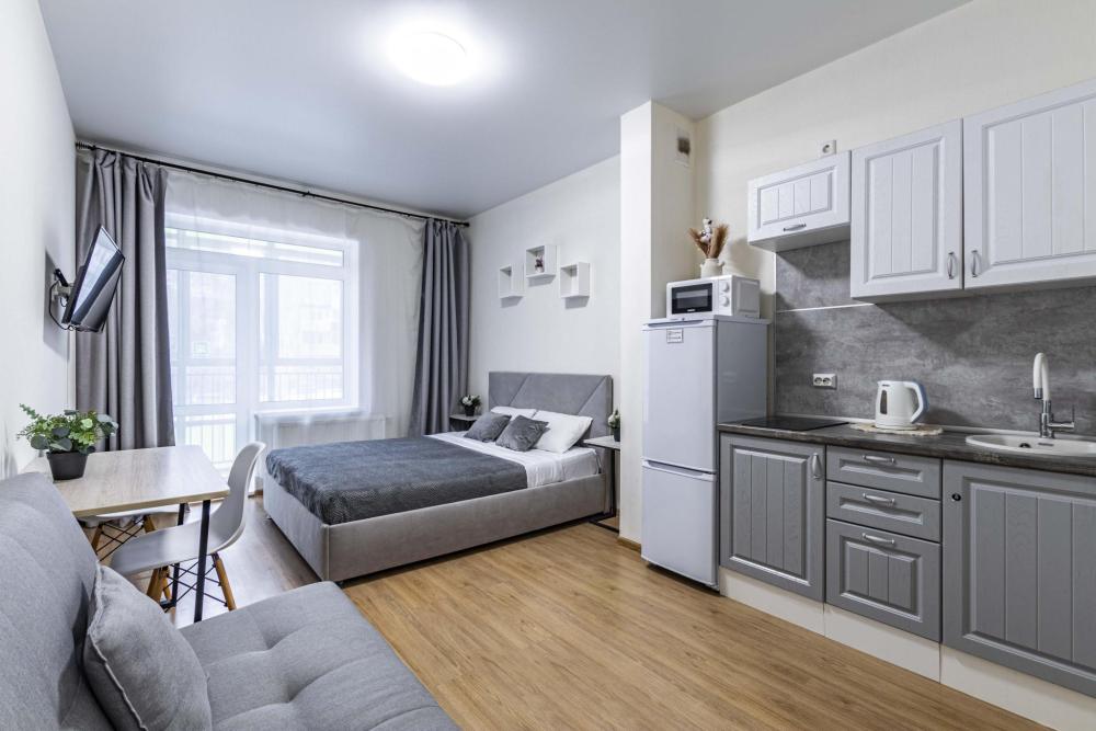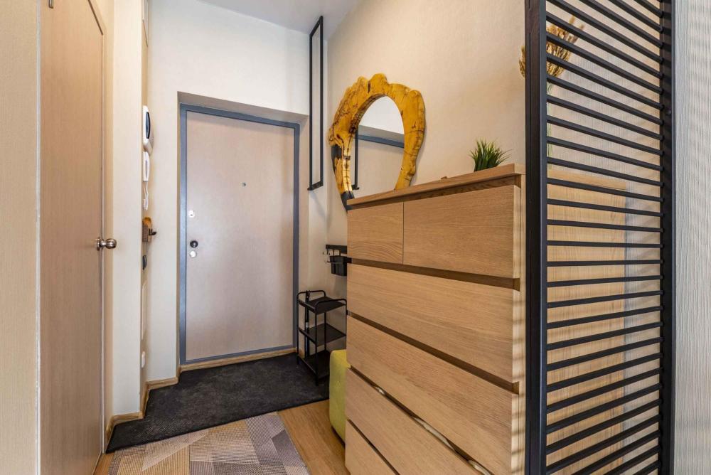 Уютная студия с новым ремонтом, 35 м2. Просторная квартира в спокойном стиле. Для семьи, желающей жить с комфортом. Отлично подойдет в качестве корпоративной квартиры для топ персонала. Кухня — практичная и функциональная. Идеально вписывается в антураж помещения, где есть обеденная зона и место для сна и отдыха на стильном диване. Кухня полностью оборудована и оснащена бытовой техникой. Есть большой холодильник, СВЧ печь, чайник, посуда для приготовления пищи. Санузел включает ванну классической модели с душем, раковину для умывания, стиральную машину, фен.