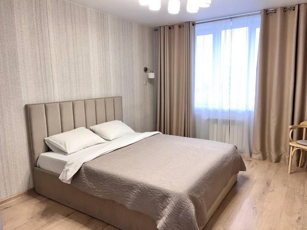 В комнате: двухспальная кровать, телевизор 32", вместительный шкаф с зеркалом. На кухне: кухонный гарнитур, электрическая варочная панель, большой холодильник с морозилкой, вытяжка, обеденная зона и двуспальный диван. Есть балкон. Дом-новостройка, 4 лифта. Во дворе есть детская площадка. Красивый вид на центр города