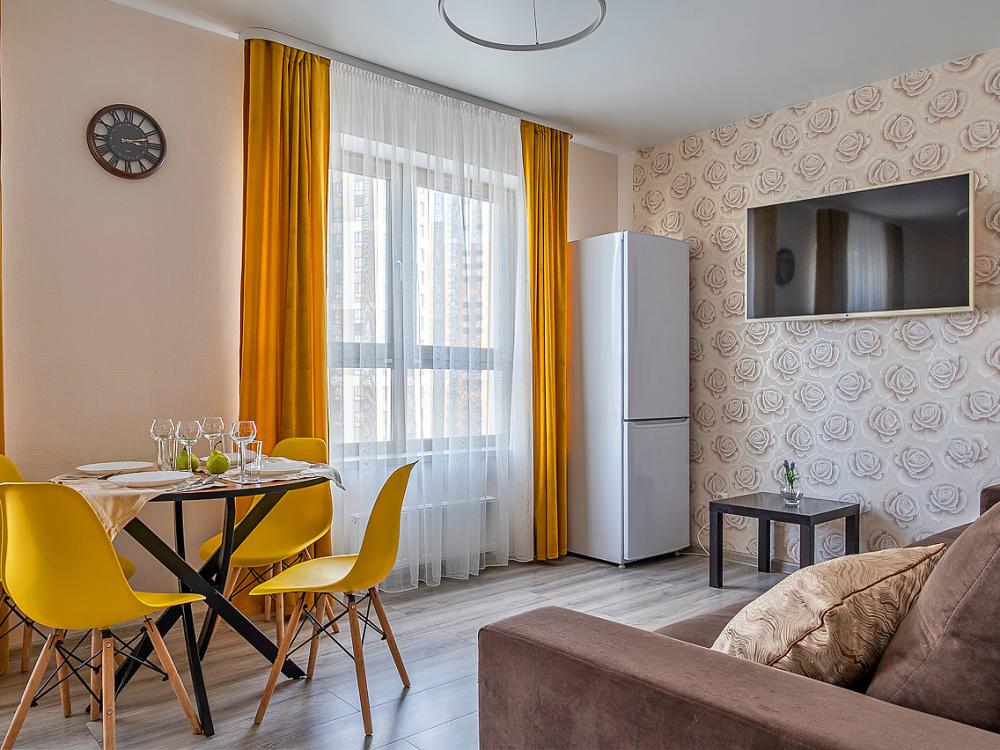 В квартире есть все для комфортного проживания 5-ти человек: двуспальная кровать (160*200); двуспальный диван; односпальный диван; шкаф для хранения вещей; WI-FI, TV. Кухня: электрическая плита, СВЧ печь, холодильник, чайник, фильтр для воды, набор посуды. Ванная комната: душевая, стиральная машина, полотенца, утюг, гладильная доска, сушилка, фен, гель для душа, шампунь, мыло, зубная паста.